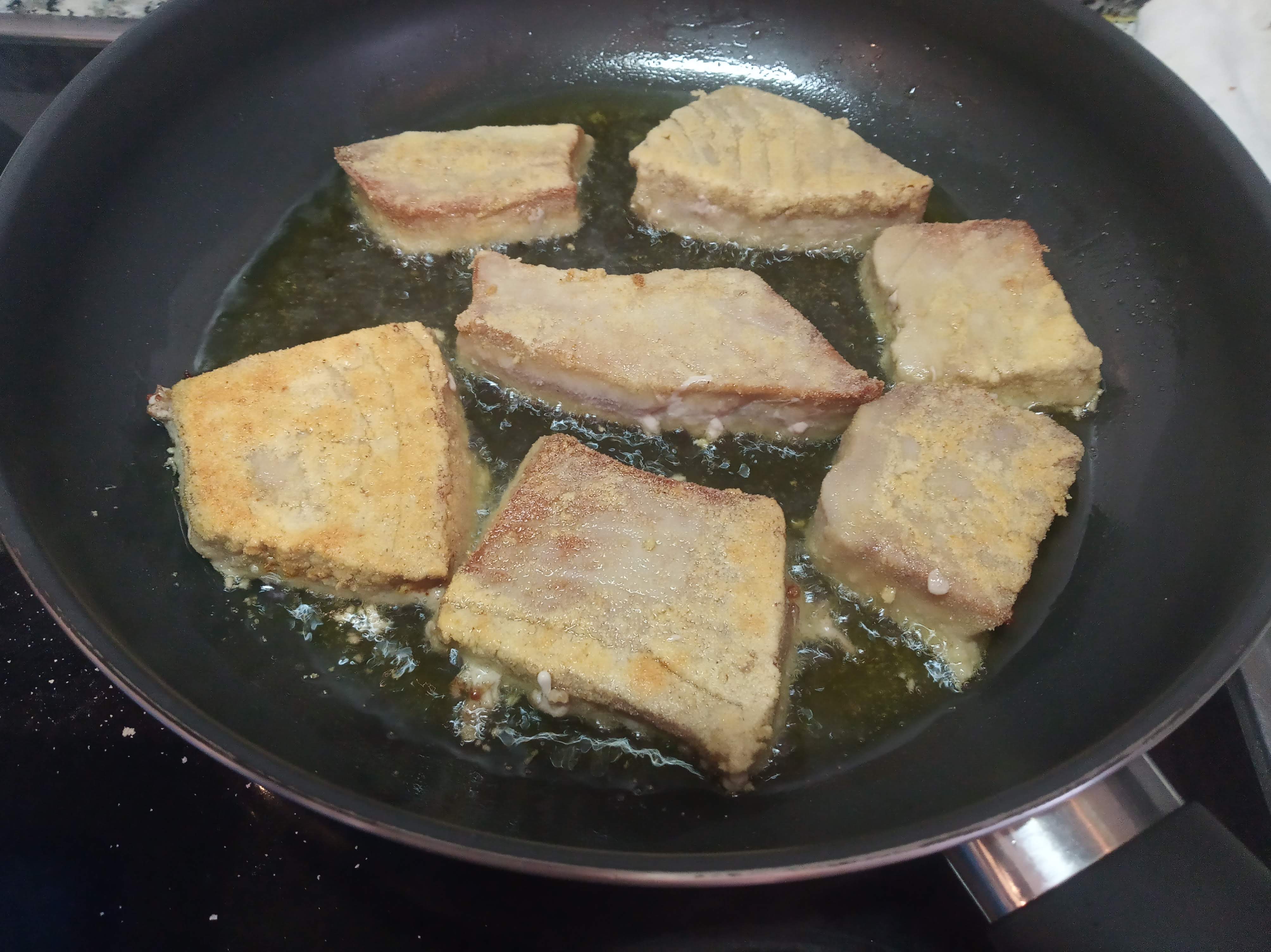 Harinar y freír el atún