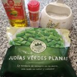 En una sartén se echa un poco de aceite y se le incorpora las judías echándole un poco de ajo troceado o molido, según el gusto de cada uno, y también un poquito de sal.