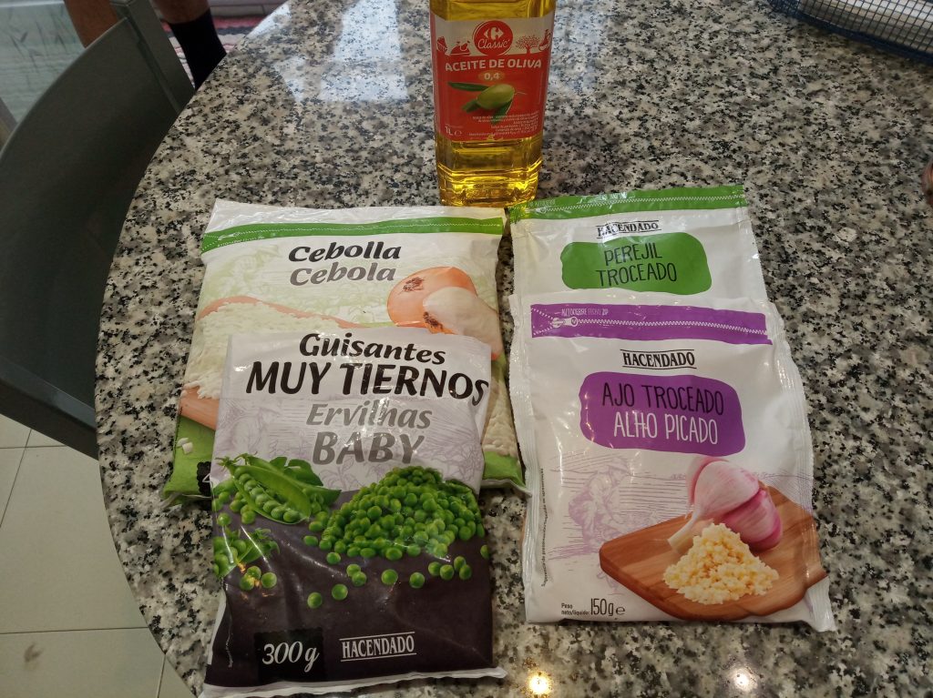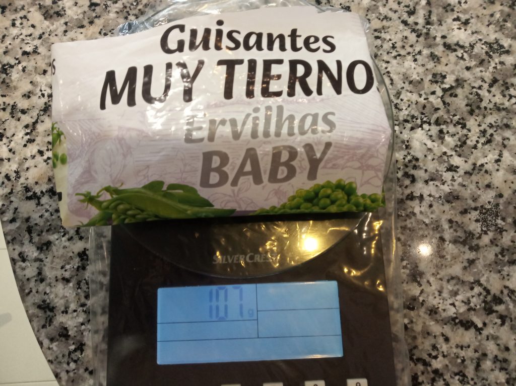 - 1 lata pequeña de guisantes o 100 g guisantes tiernos congelados