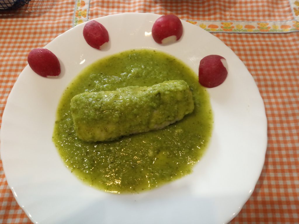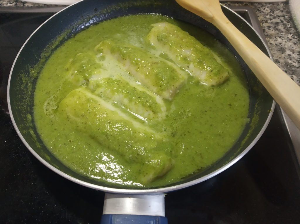 Poner en la cazuela la merluza y añadir la salsa por encima y dejar cocer 10 minutos a temperatura mínima.