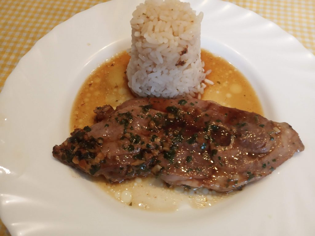 - Chuletas de pavo al horno o en sarten con arroz blanco