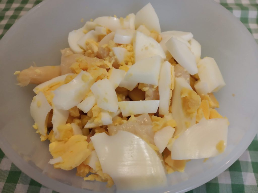 - Ensalada de pollo y fondo de cocina con mayonesa