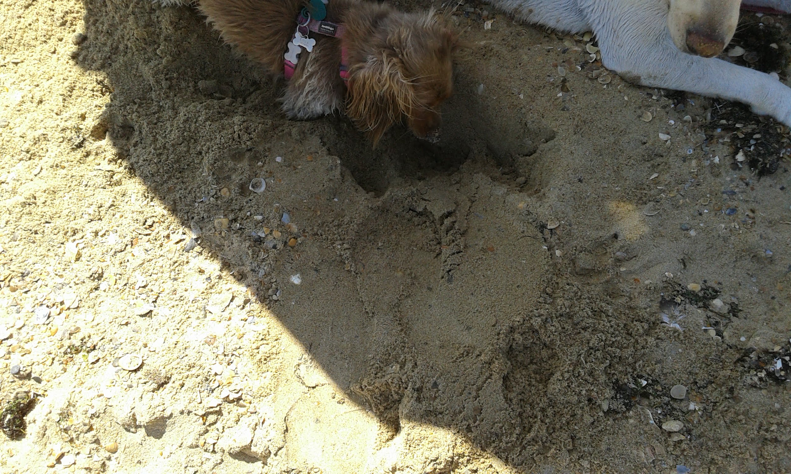 20180829_134928 Publicado el 6 septiembre, 2018 a 2560 × 1536 en 29/08/2018 Playa del Espigón en Huelva – Perruna Lola se mete en el agujero que a hecho Luna y casi le cubre jaja
