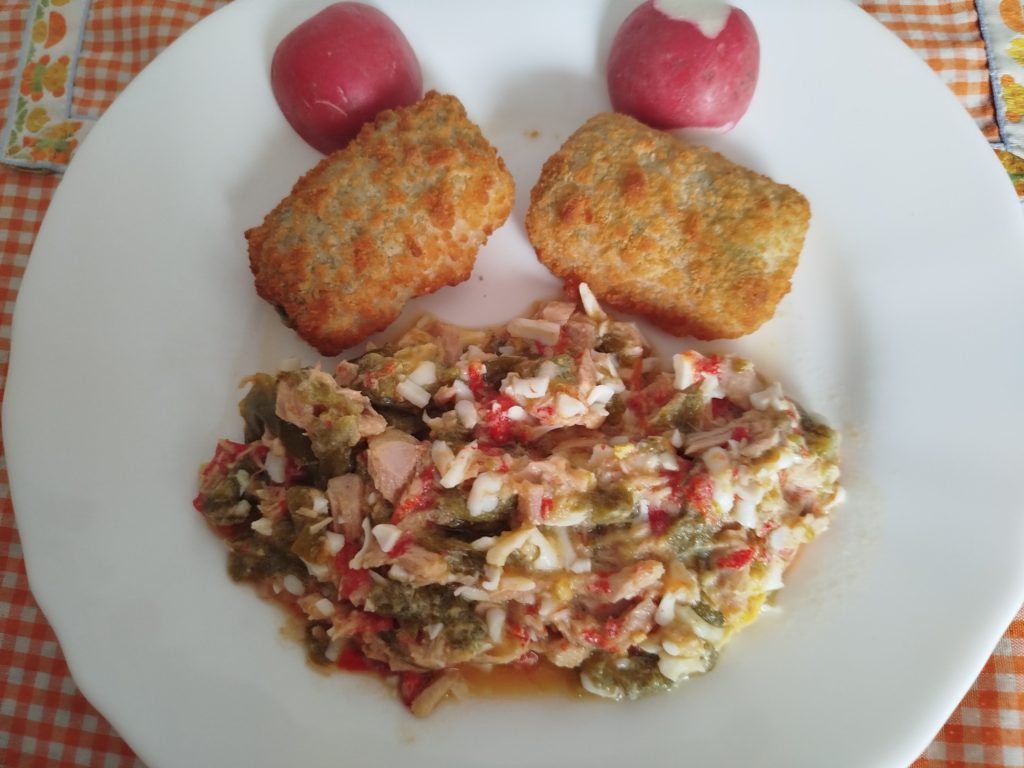 Esta vez lo acompañe de Pimientos asados en la Olla a Presión o Exprés y aliño