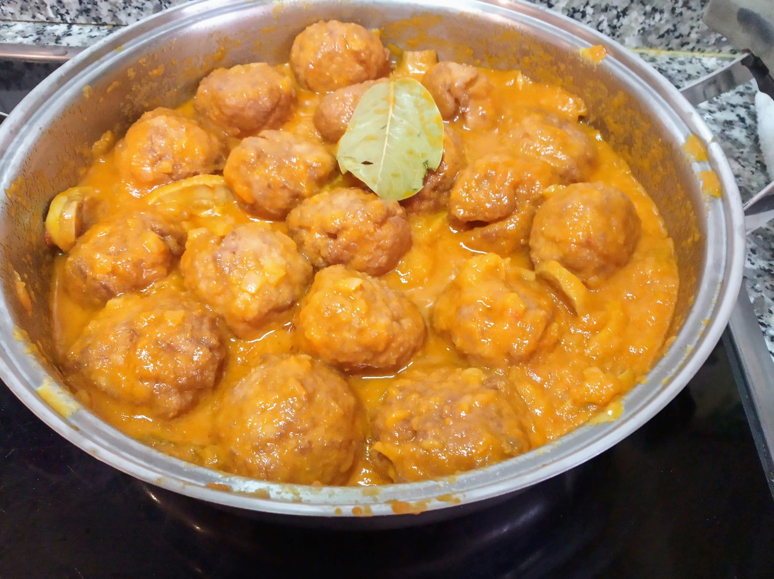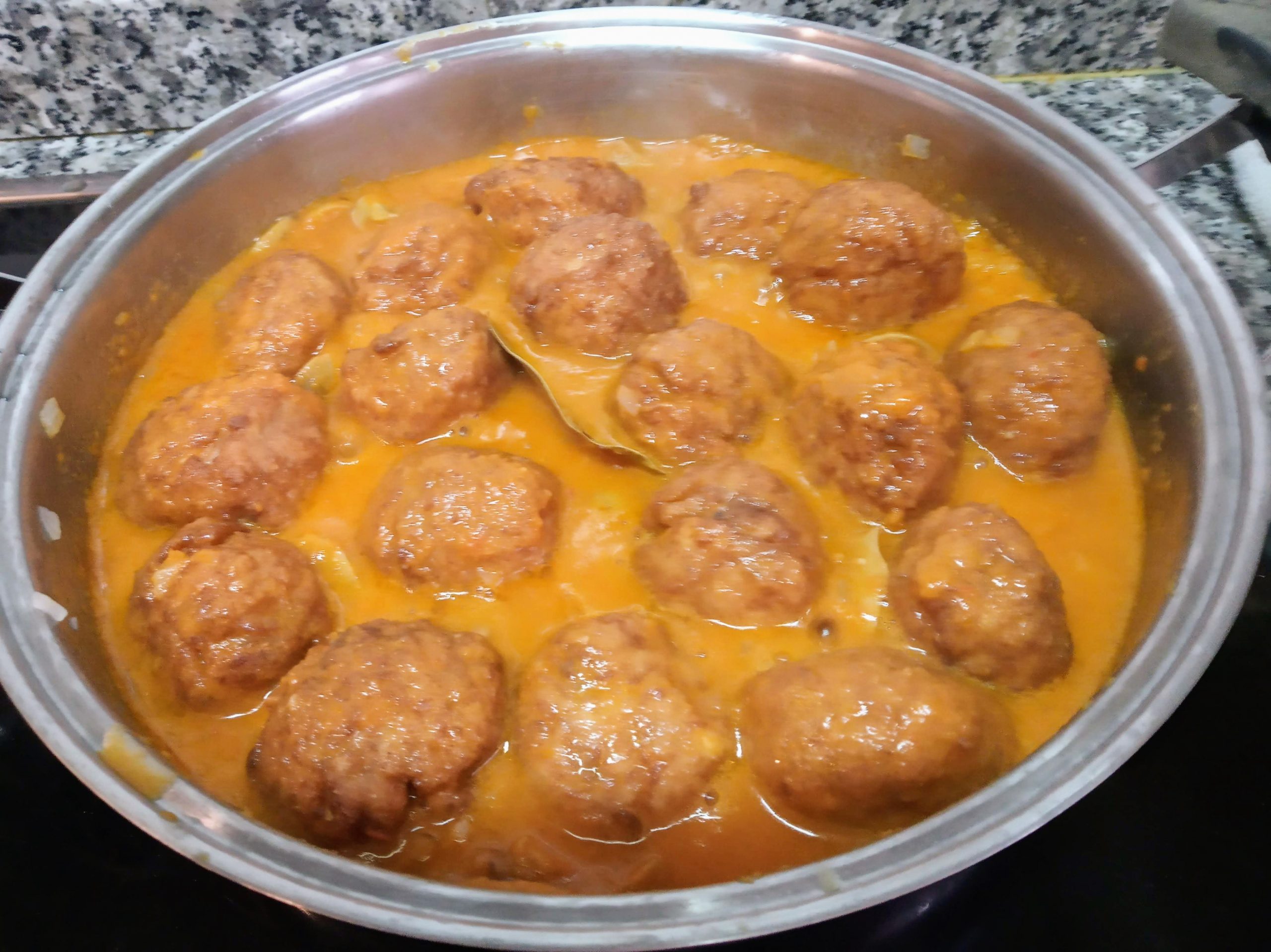 En ese momento incorporamos las albóndigas, removemos muy bien y dejamos cocer todo junto unos 5 minutos.
