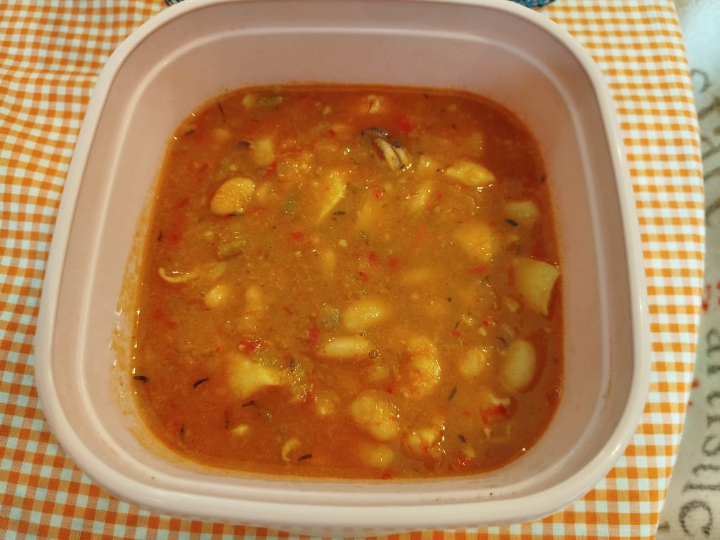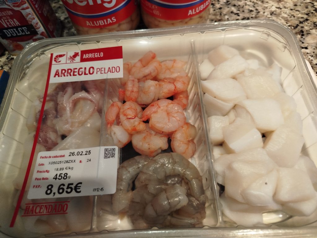 📜 Receta tomada de otra mía. Alubias con calamar, gambas y almejas