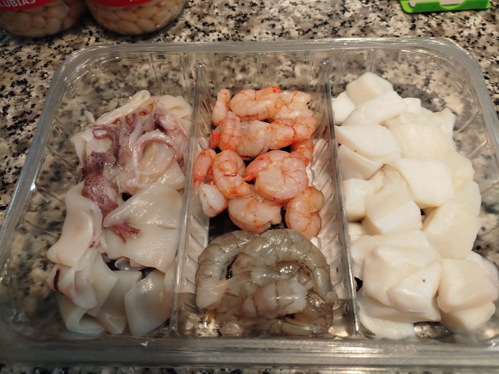 - 100 g calamares, 100 g gambas, 100 g langostinos, 100 g choco o