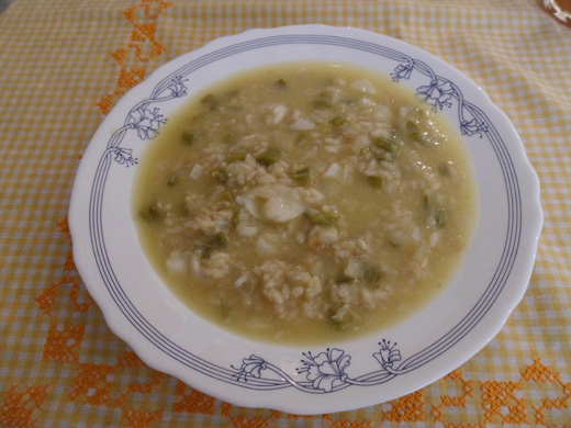 Seguidamente, vertemos el caldo de pescado y lo dejamos hervir a fuego suave durante unos 30 minutos. Hasta que este el arroz tierno.