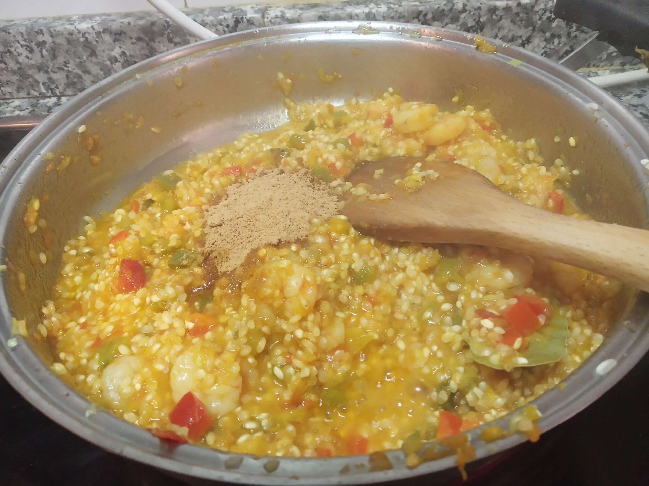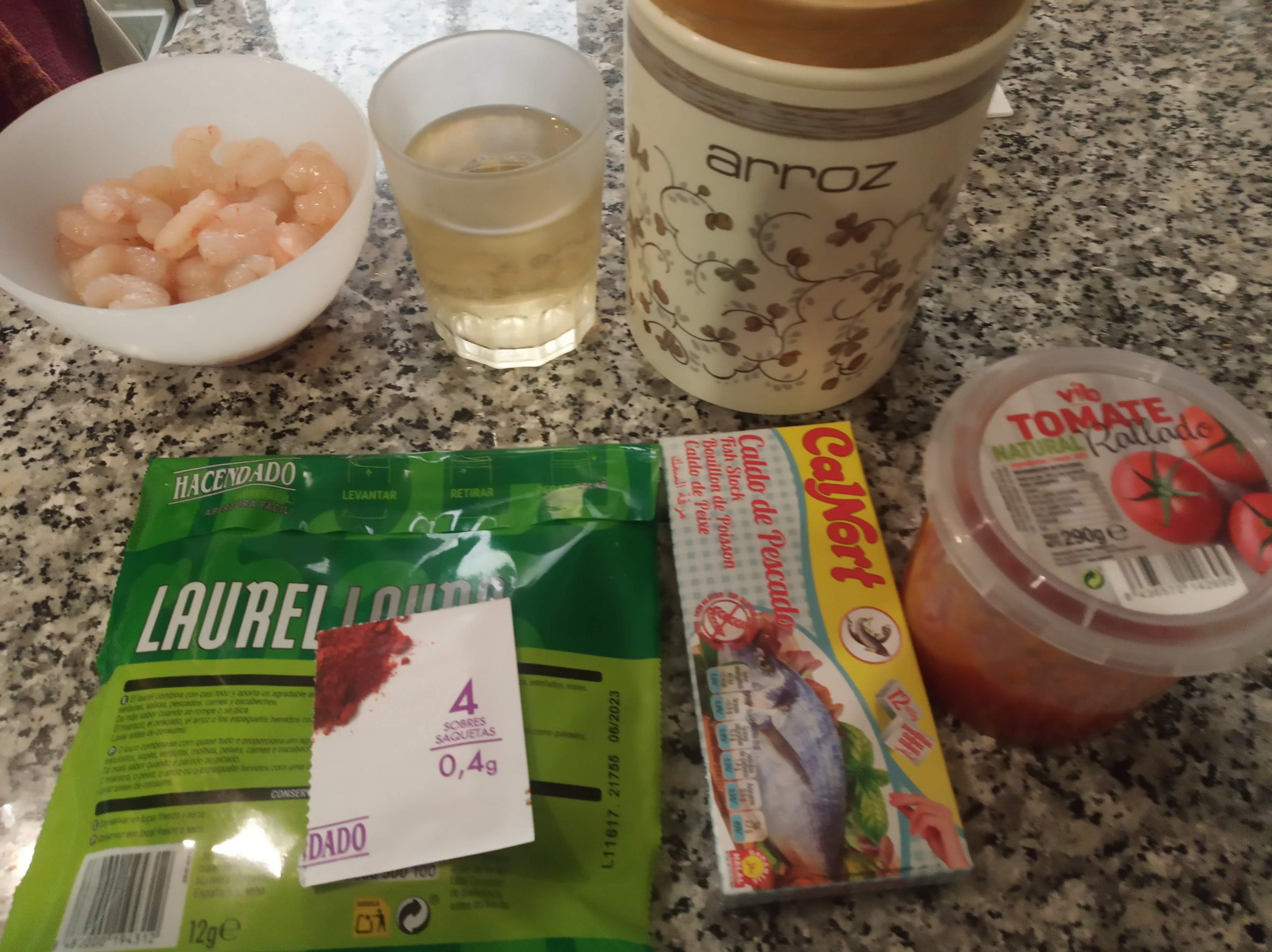 Por ultimo, el laurel, azafrán, el vino y el agua.