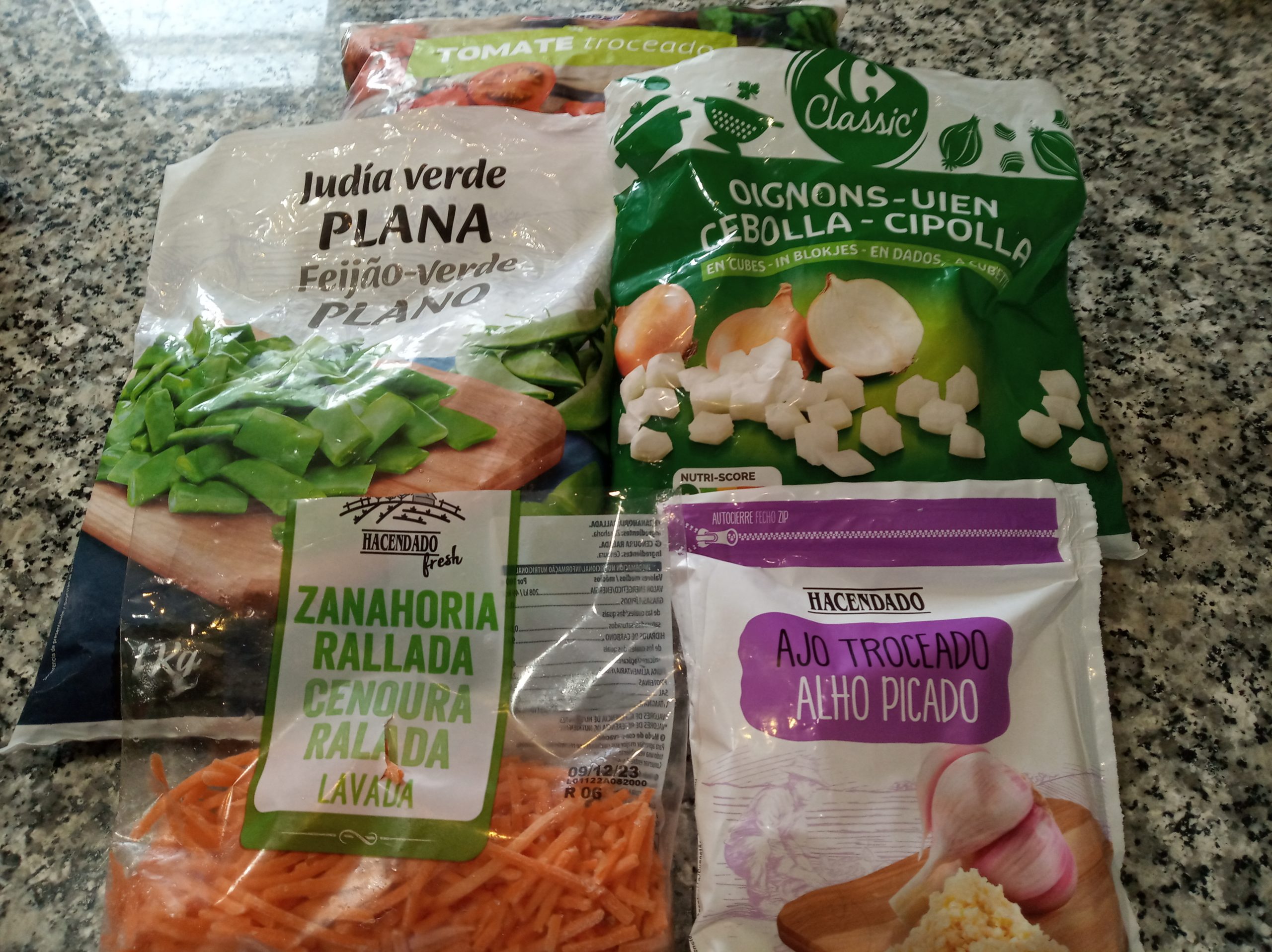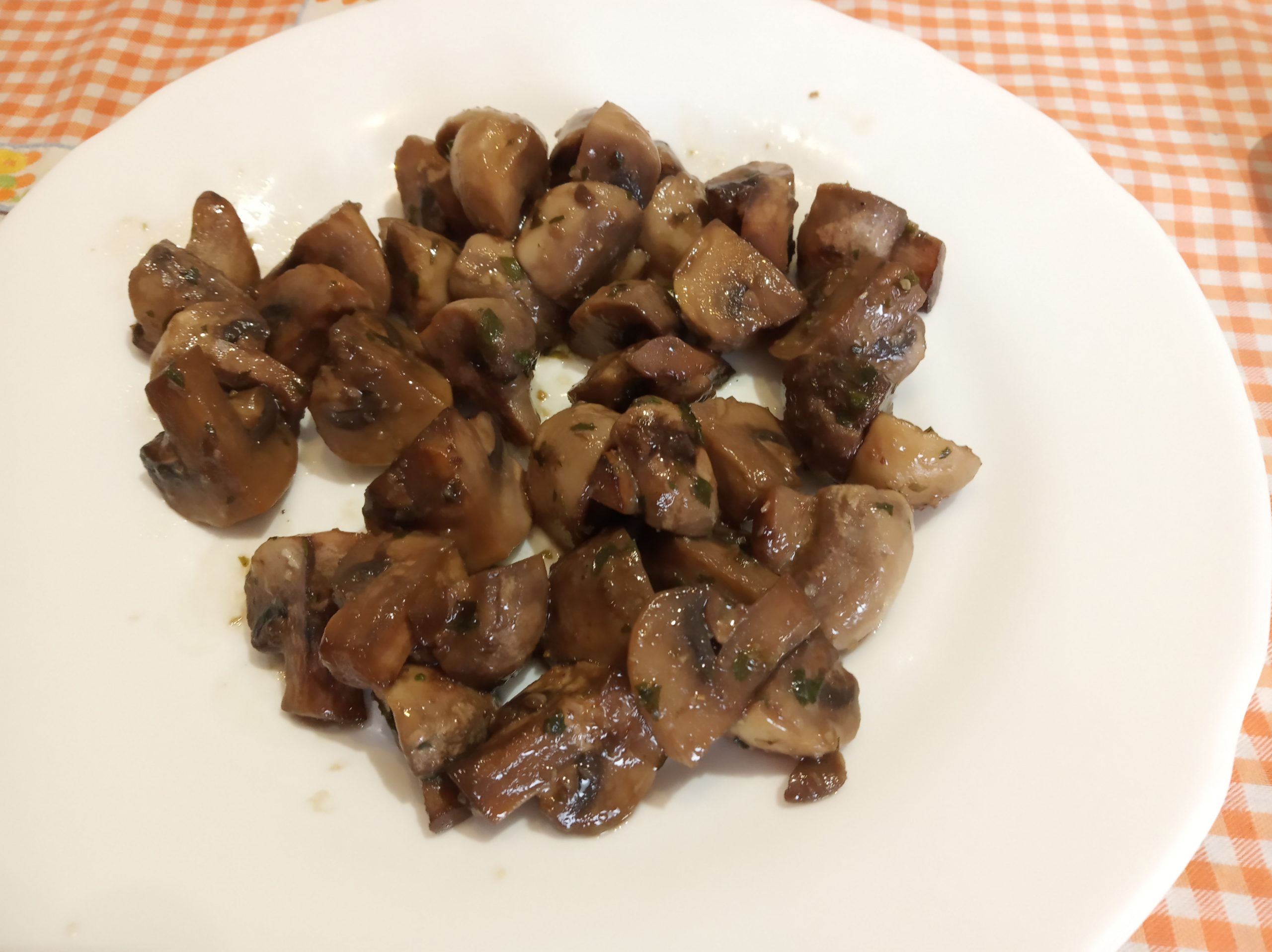 Repartir en plato hondo todo. Si has hecho los champiñones al ajillo aparte, repartir en plato llano, ya que hay una persona con alergia.