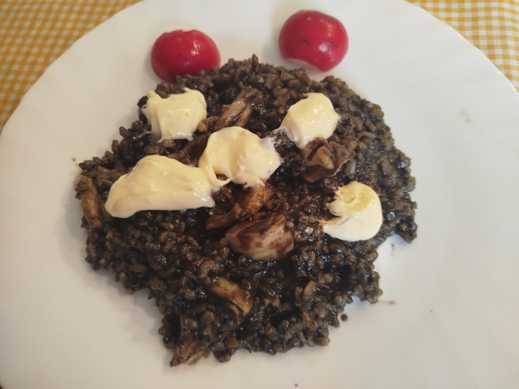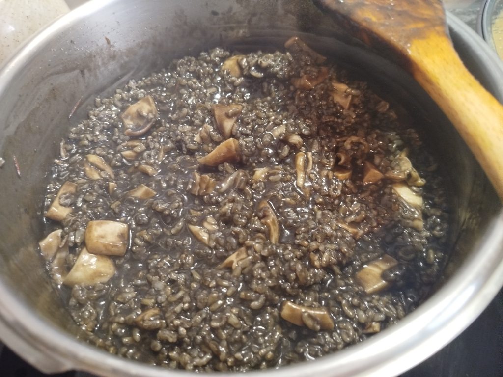 📜Receta tomada de otra mía en olla normal. Arroz negro con Sepia