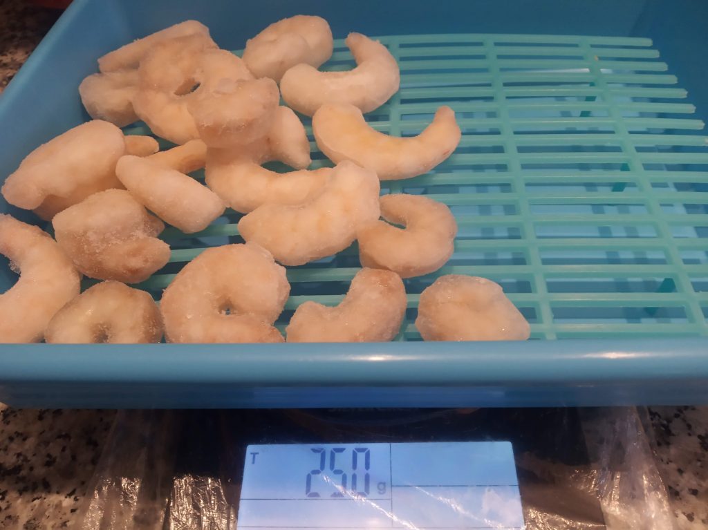 - 250 g de gambas medianas peladas y congeladas