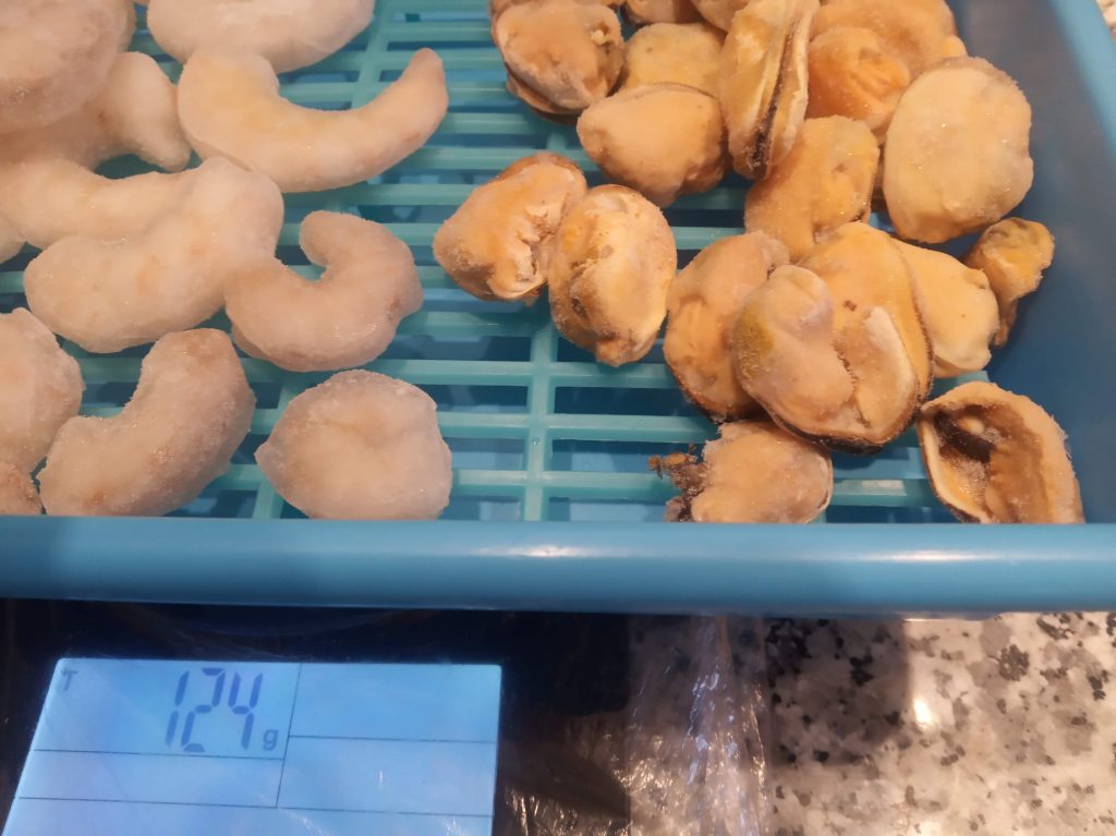 - 125 g de carne de mejillones cocidos y congelados