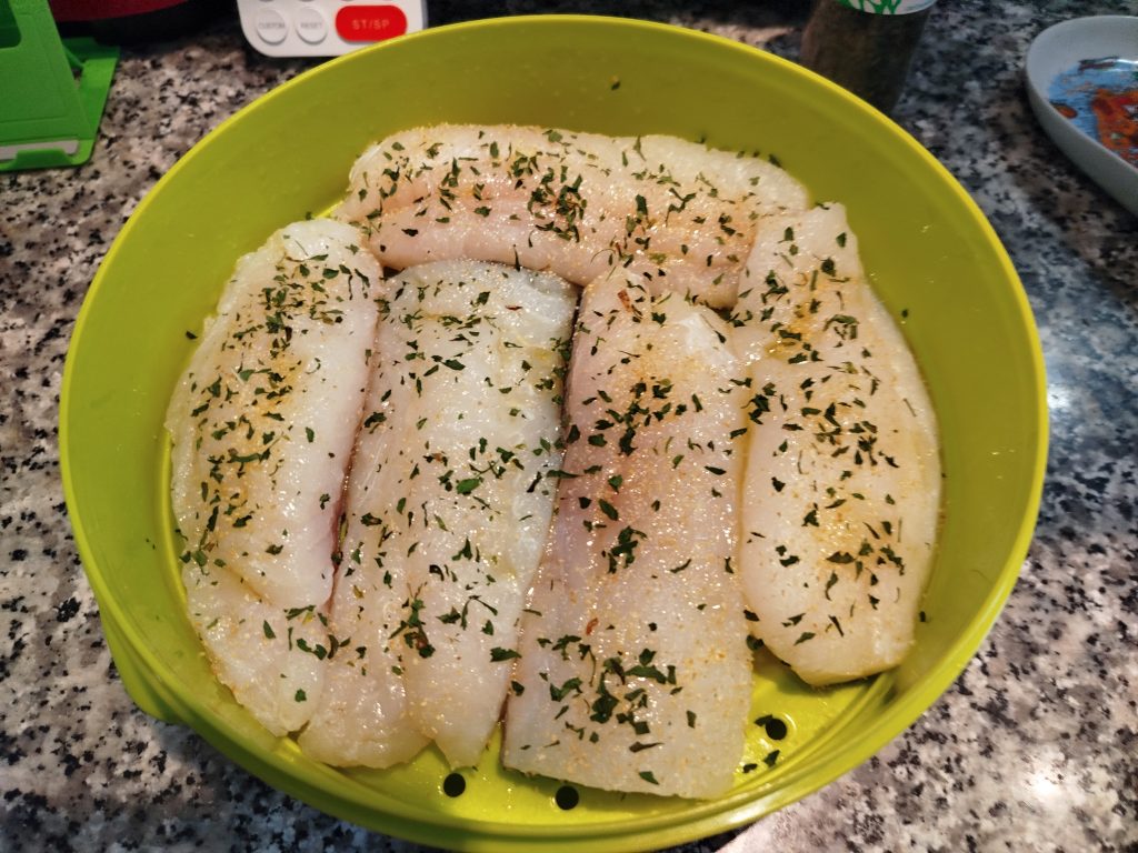 Descongelación: A temperatura ambiente (aprox. 22ºC): aprox. 3-3,5 horas. En el frigorífico (aprox. 5ºC): aprox. 8-9 horas. Atención: Enjuagar el pescado sólo por la parte de la piel una vez descongelado y secar con papel de cocina.