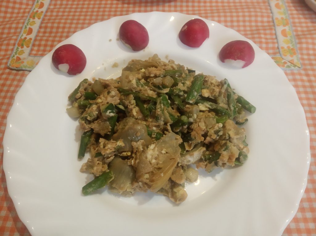 Esta vez la acompañe con Guarnición o revuelto de espárragos con calabacín y alcachofas