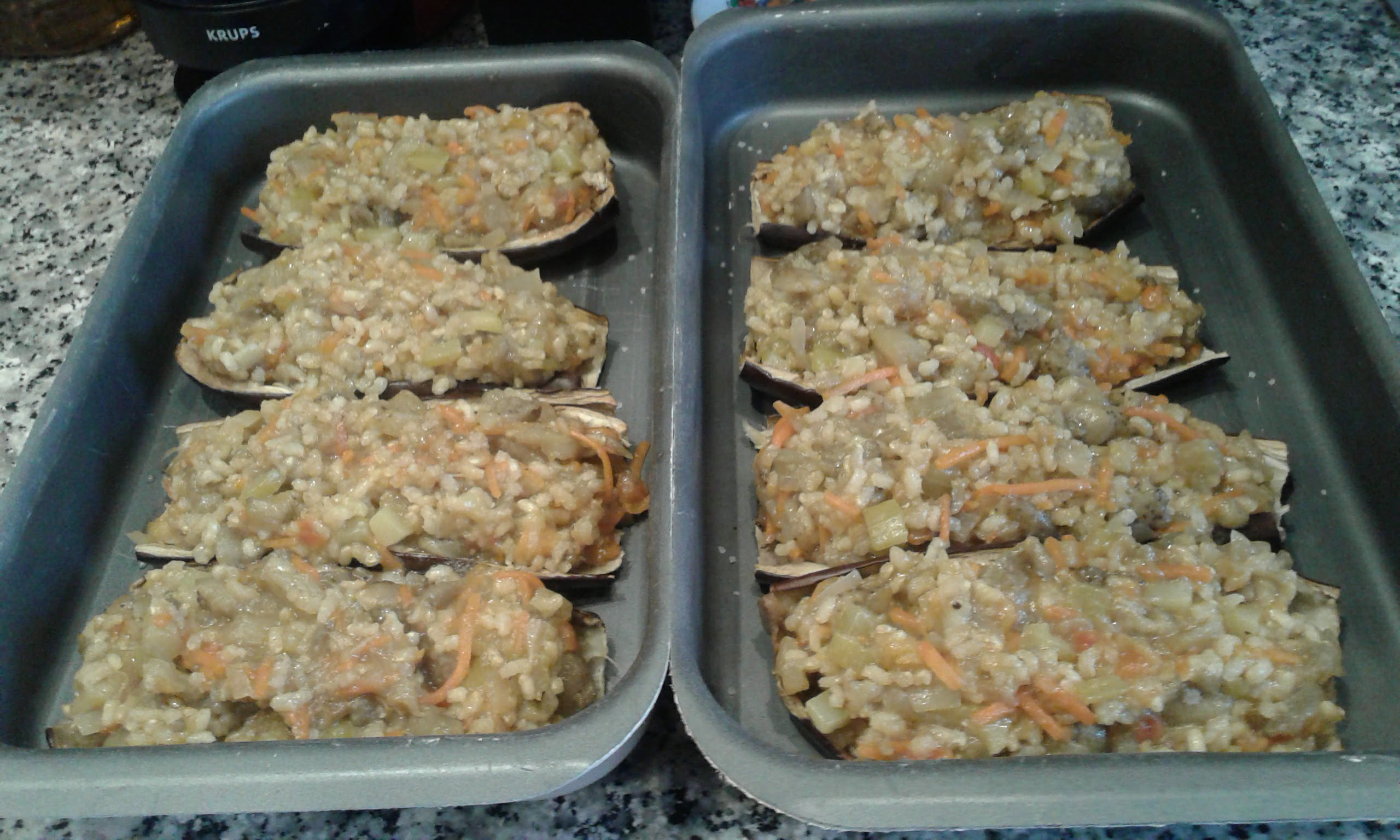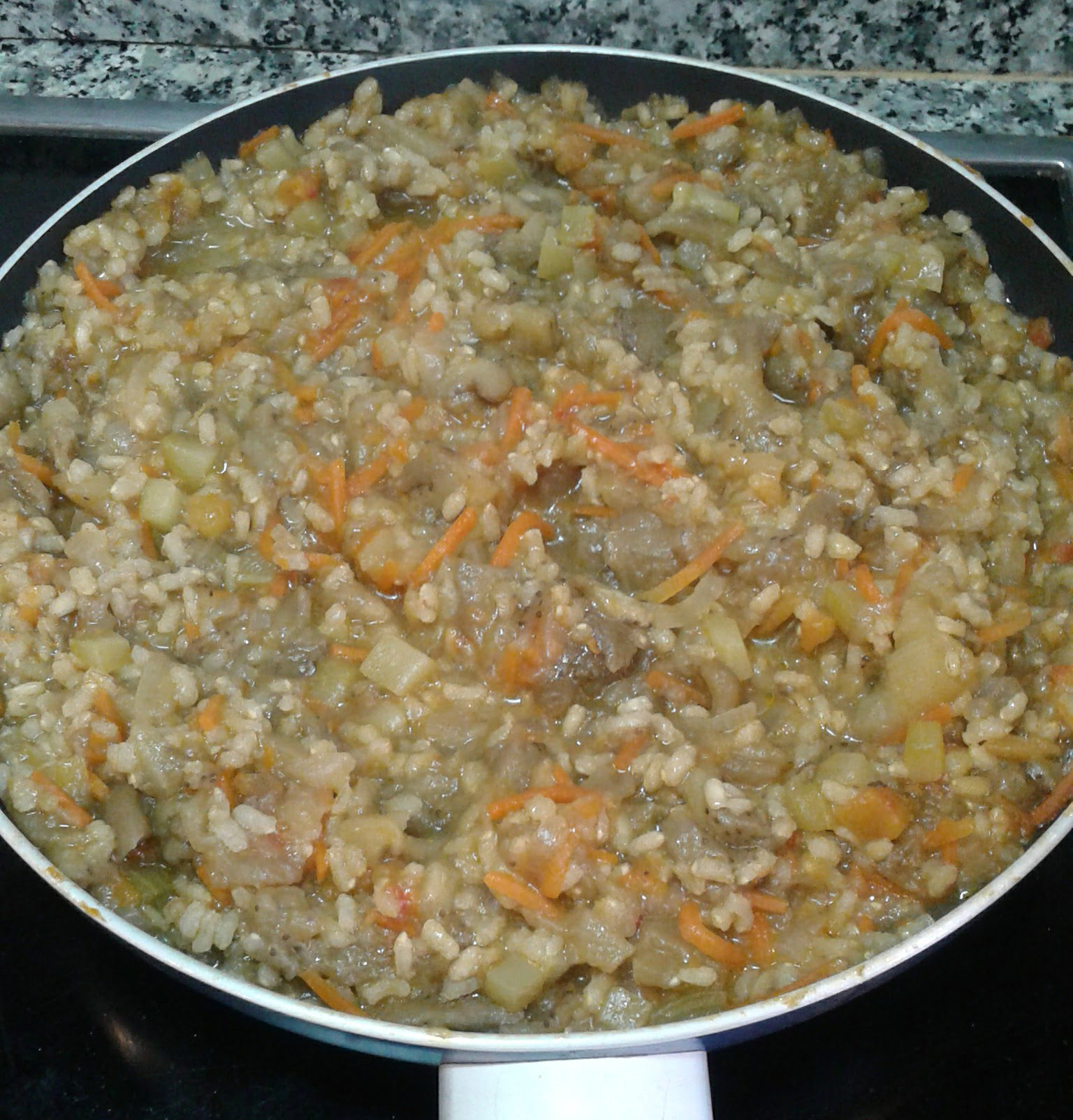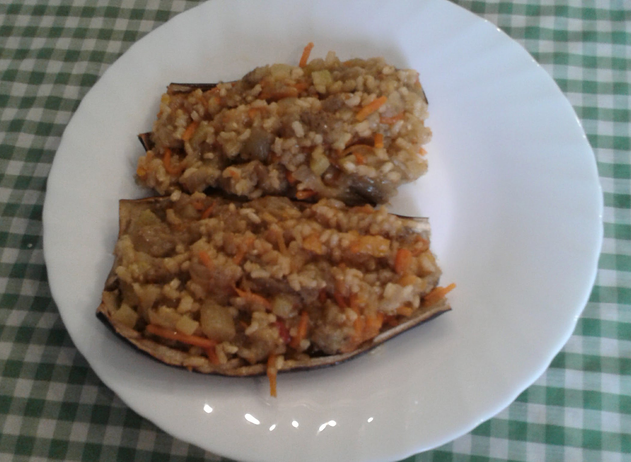 Añadir después, la pulpa de la berenjena, el arroz y el curry al gusto y mezclar todo muy bien.