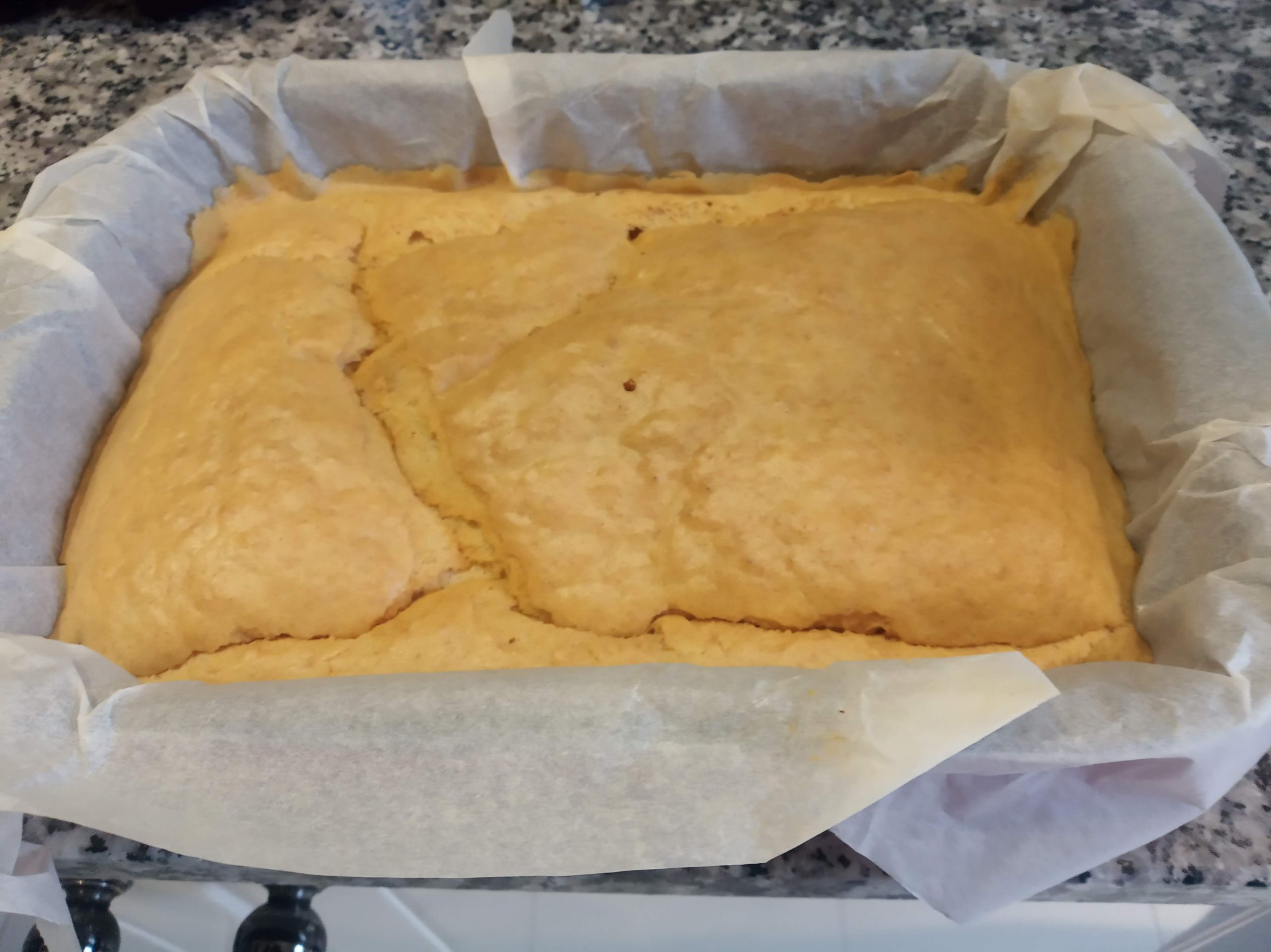 5. Engrasar un molde bajito o forrar con papel de horno, verter la mezcla.