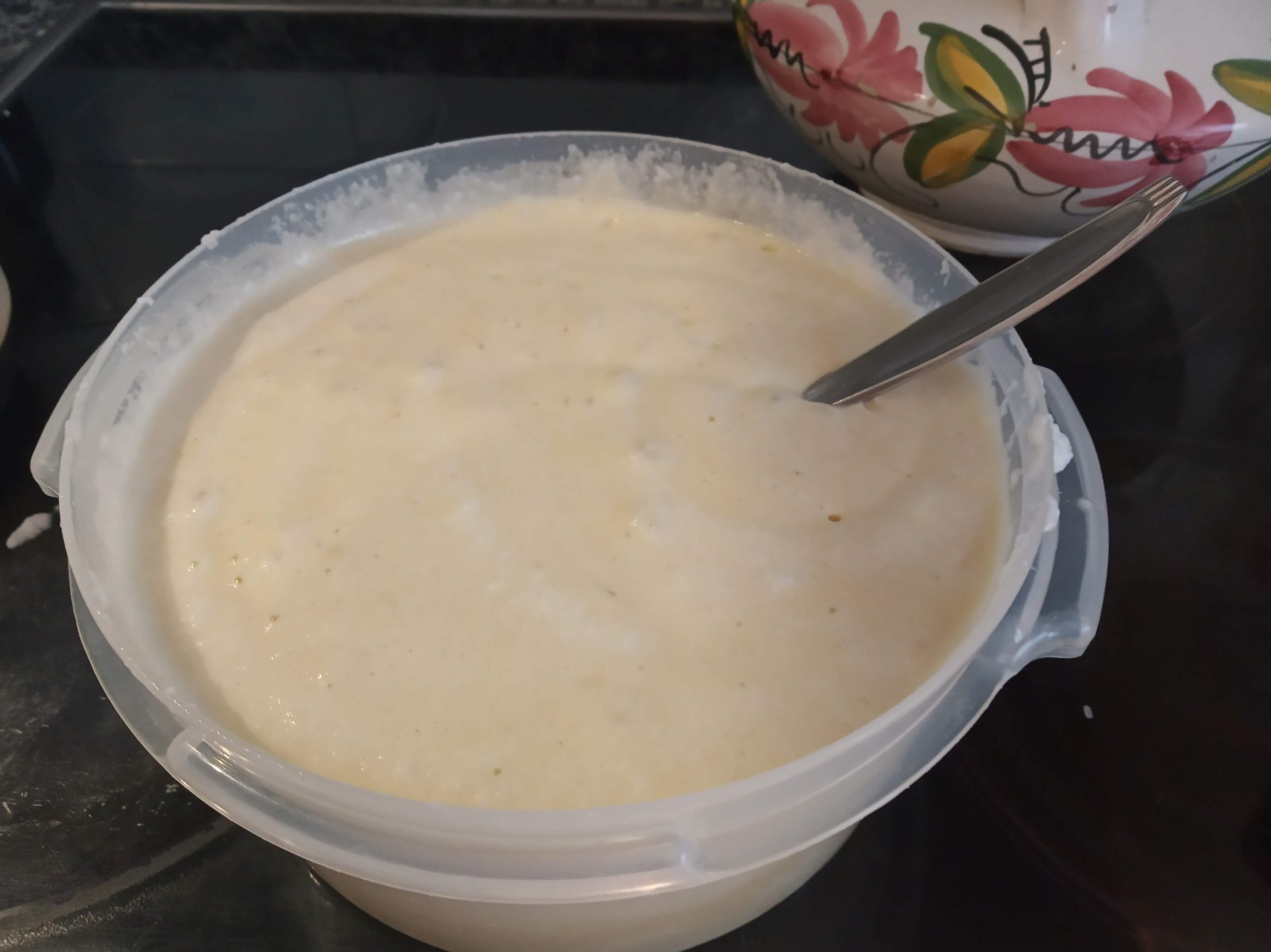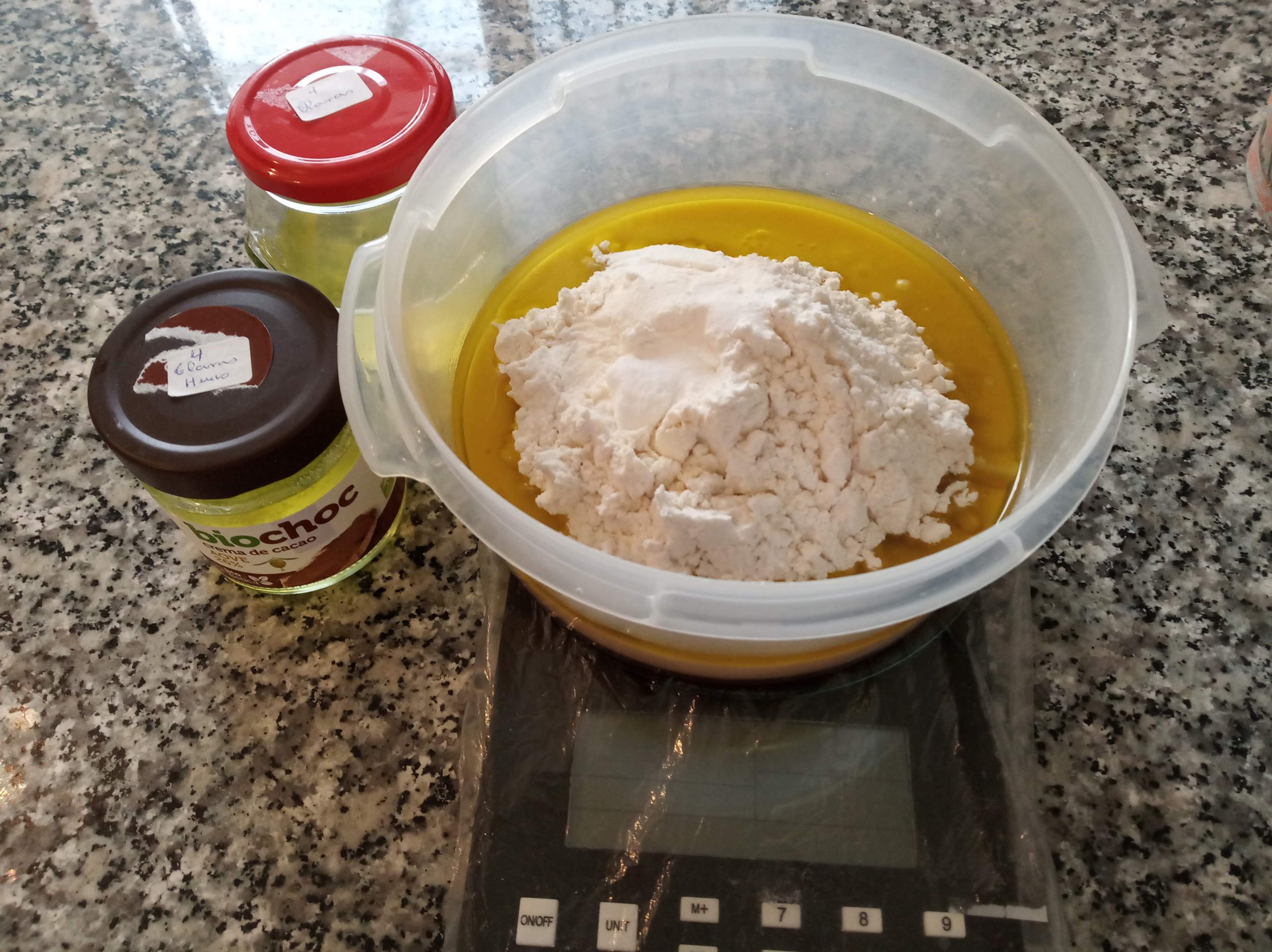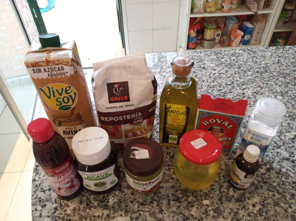 3. Mezclamos en un bol el resto de ingredientes: aceite, leche, azúcar, harina, levadura y bicarbonato, batir todo muy bien.