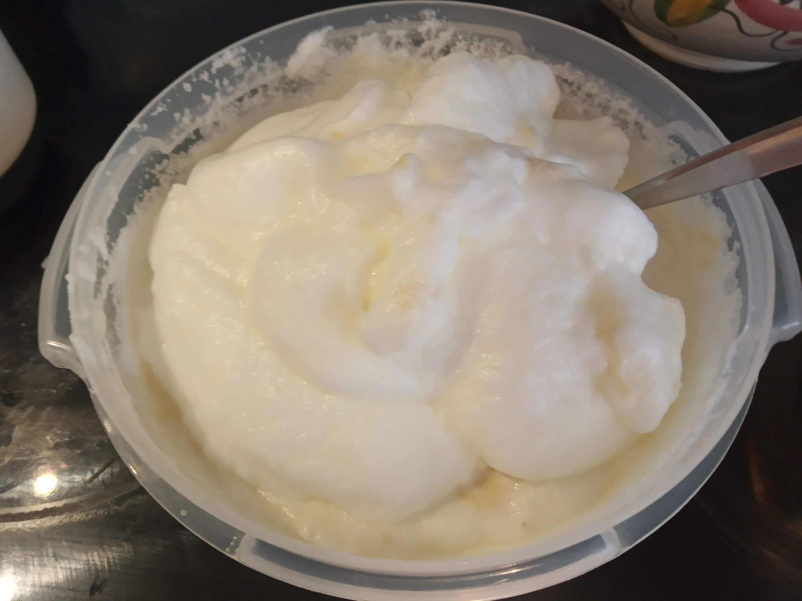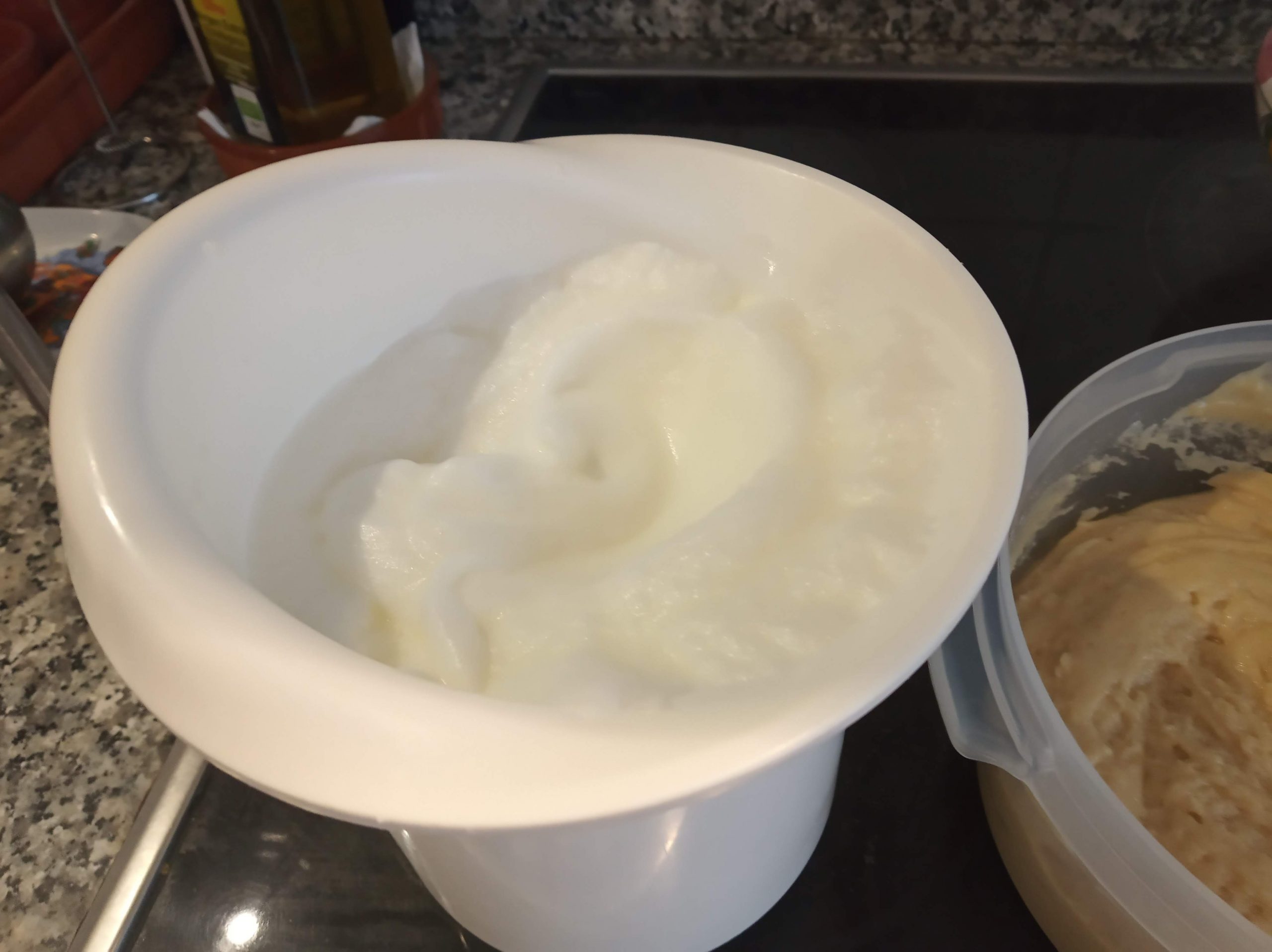 4. Agregamos a esta mezcla las claras poco a poco, con una espátula en formas envolvente.