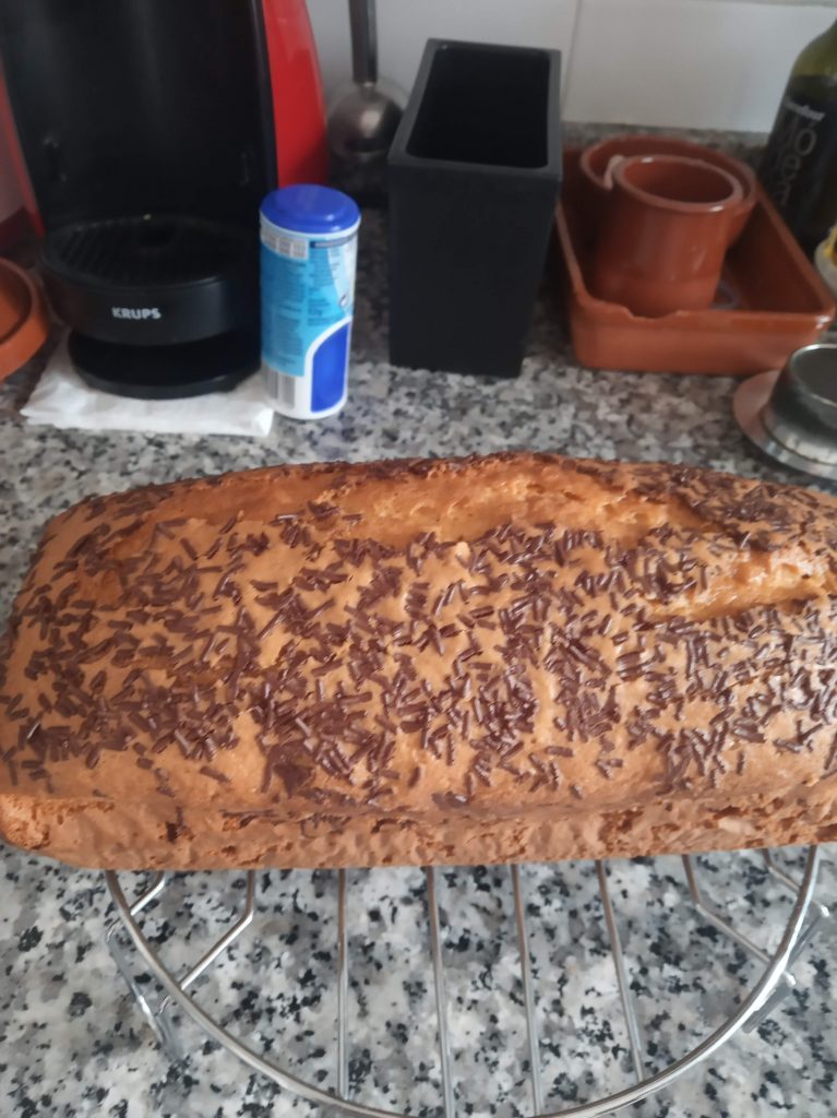 Sacar del horno, dejar templar un poco, desmoldar y dejar enfriar bien sobre una rejilla, luego puedes guardarlo en un taper en el frigorífico o cortarlo en trozos y congelarlo para tomarlo poco a poco.