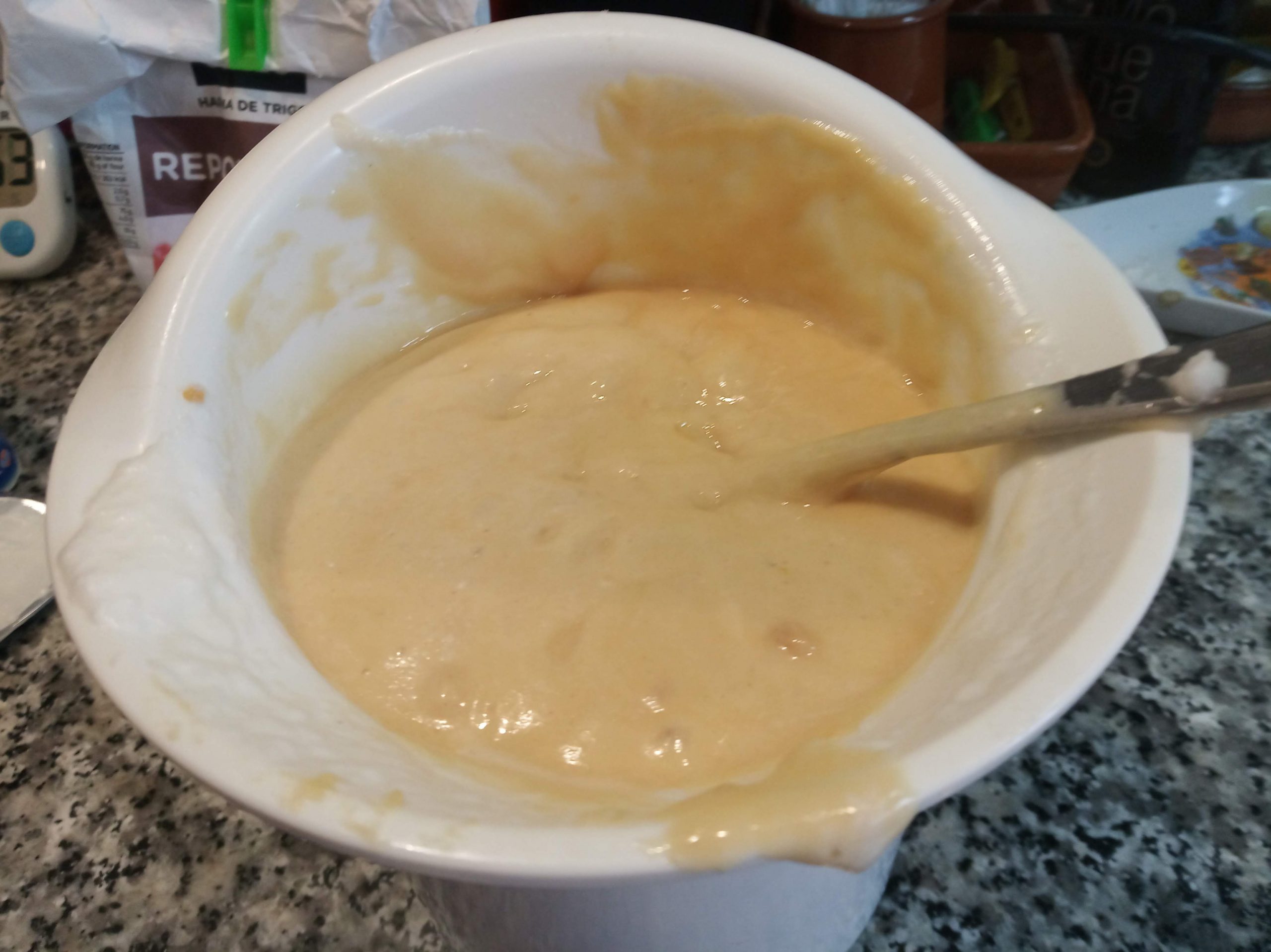 Incorporamos el aceite y el yogur y volver a batirlo todo muy bien.