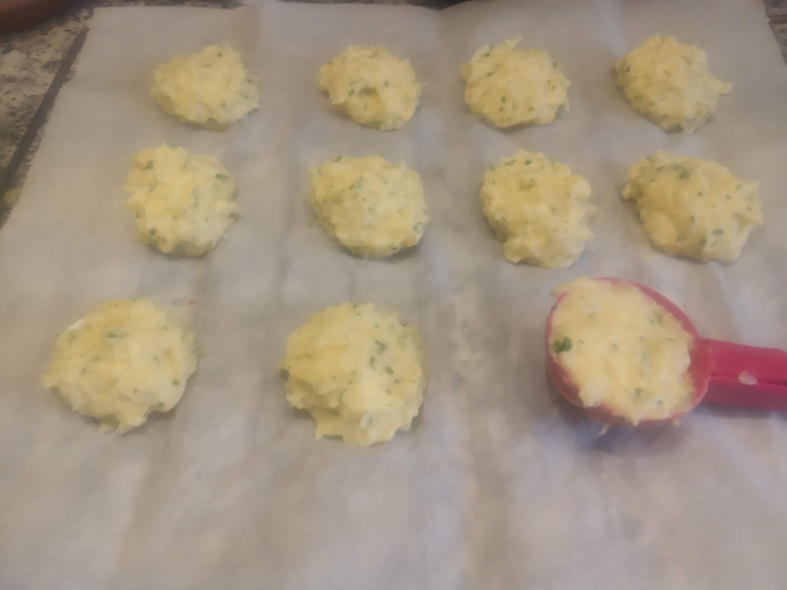 Llegado la hora de hornear, puedes meter la masa en una manga pastelera, o hacer montones con una cuchara.