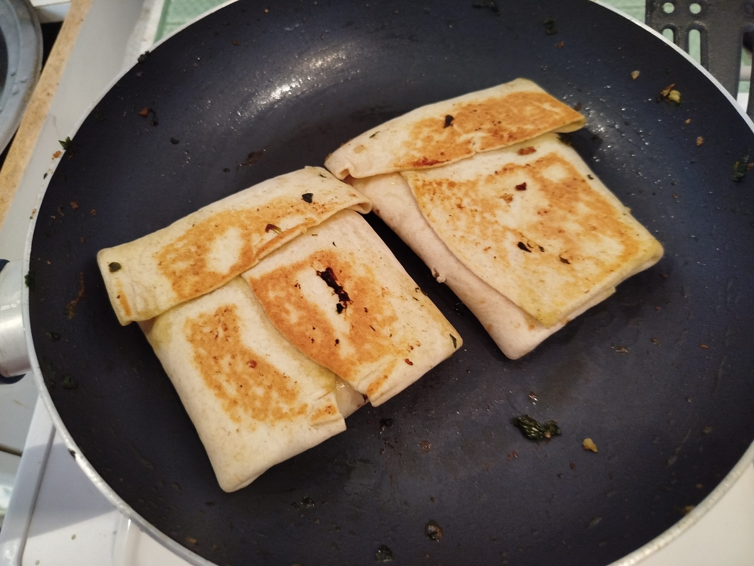 La otra opción, es rellenar las Piadina, cerrarla y calentar en la sarten, hasta dorar por las dos caras, y servir.
