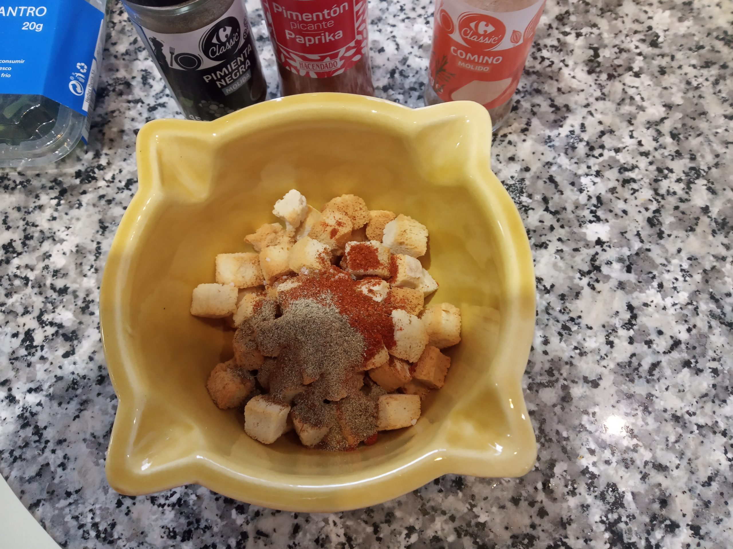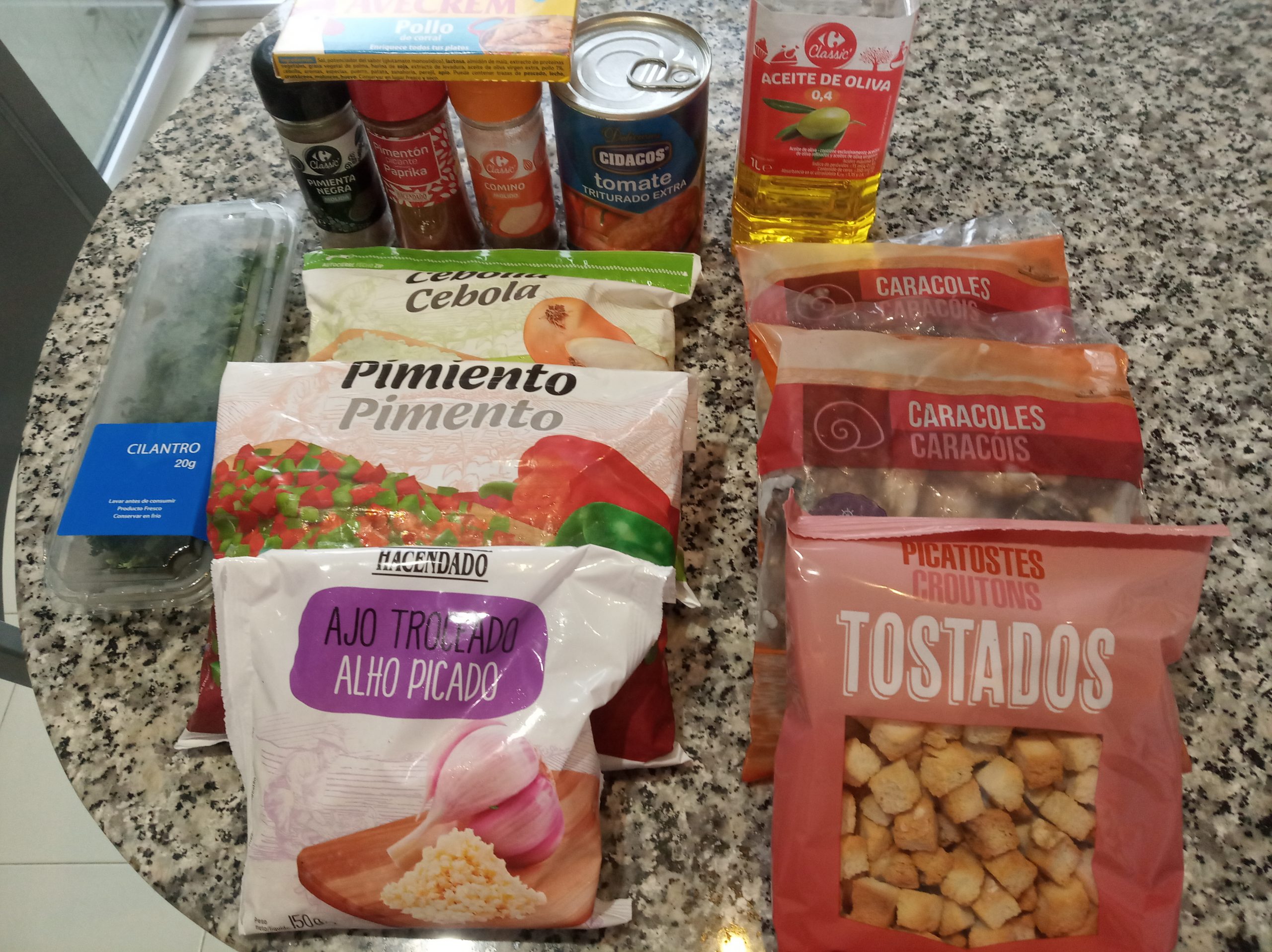 • 1 cucharada de especias para caracoles o 2 cdita comino, 2 cdita pimentón picante, 1/2 cdita pimienta negra y cilantro