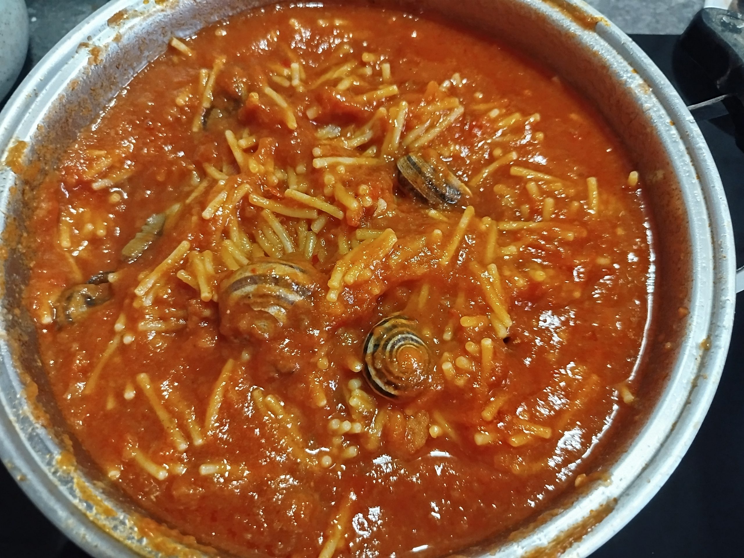 - 1 cucharada de especias para caracoles o 2 cdita comino, 2 cdita pimentón picante, 1/2 cdita pimienta negra y cilantro