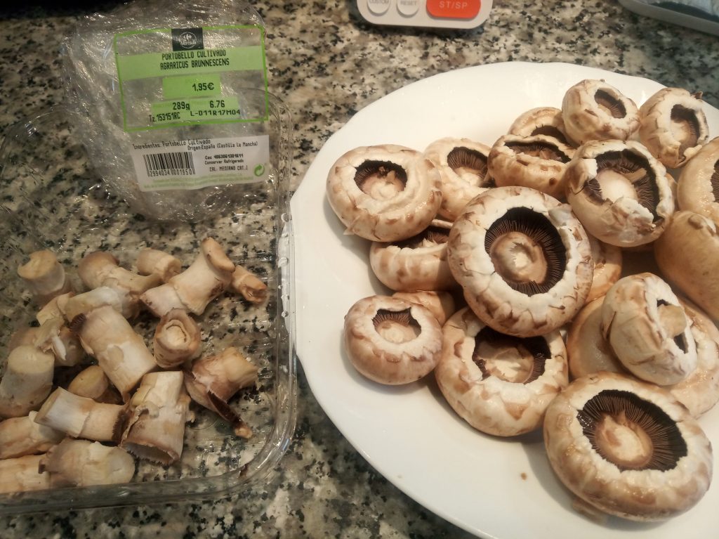 Puedes quitar la piel al champiñón, pero esta de portobello es muy fina, así que preferí, lavarlo y limpiarlo, solo por fuera.