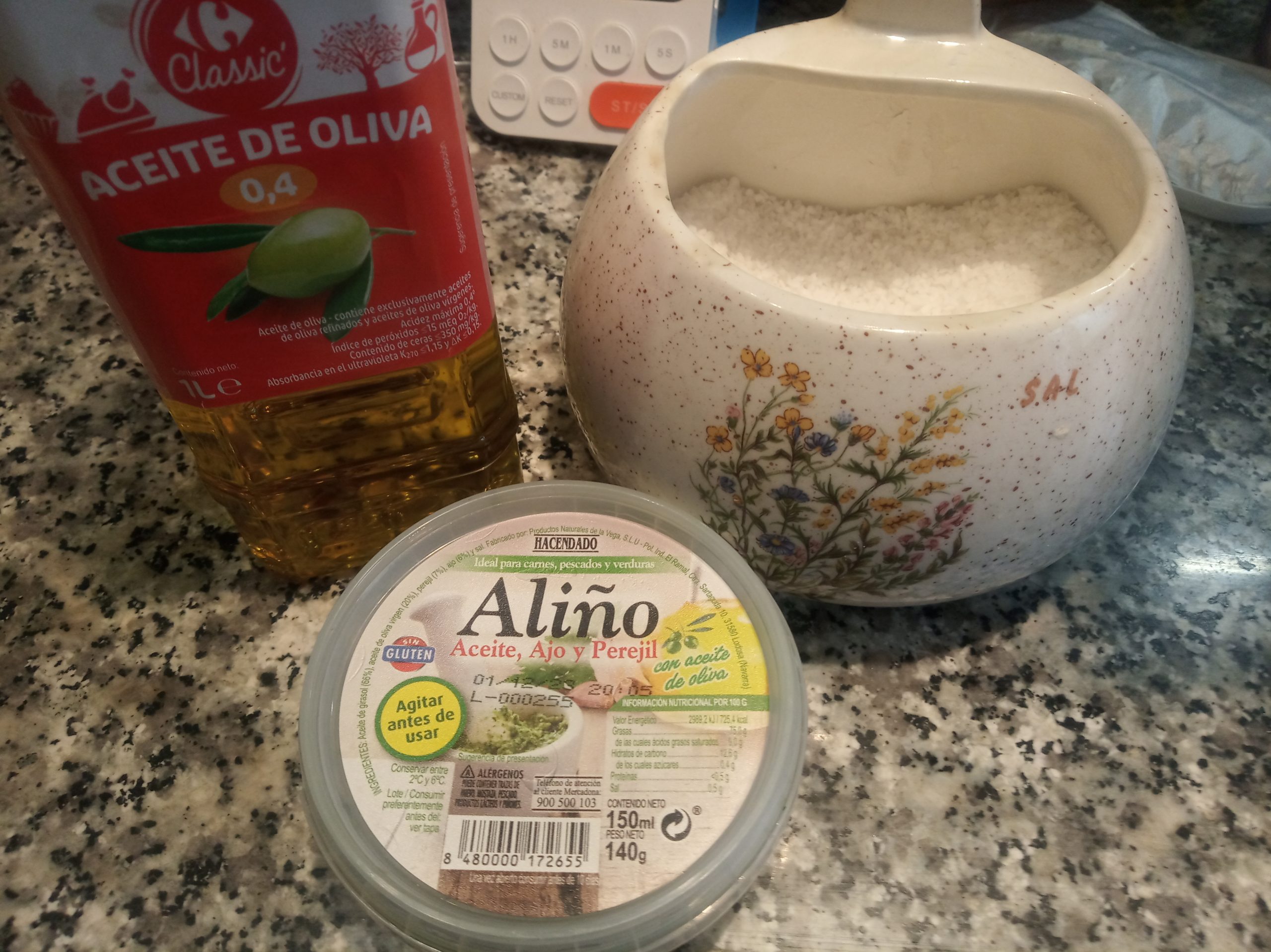 - 1 poco de aceite, ajo y perejil o el aliño ya preparado