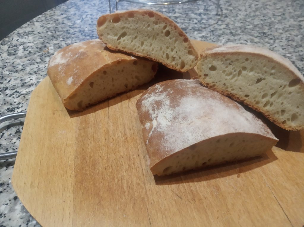 Con mucho cuidado de no quemarte, saca las dos bandejas, desmolda, y coloca las chapatas en una rejilla, para que se enfríe bien y seque por abajo.