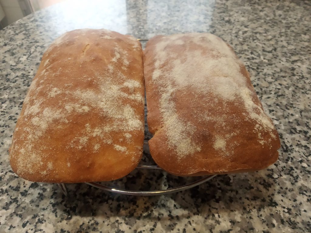 Con mucho cuidado de no quemarte, saca las dos bandejas, desmolda, y coloca las chapatas en una rejilla, para que se enfríe bien y seque por abajo.