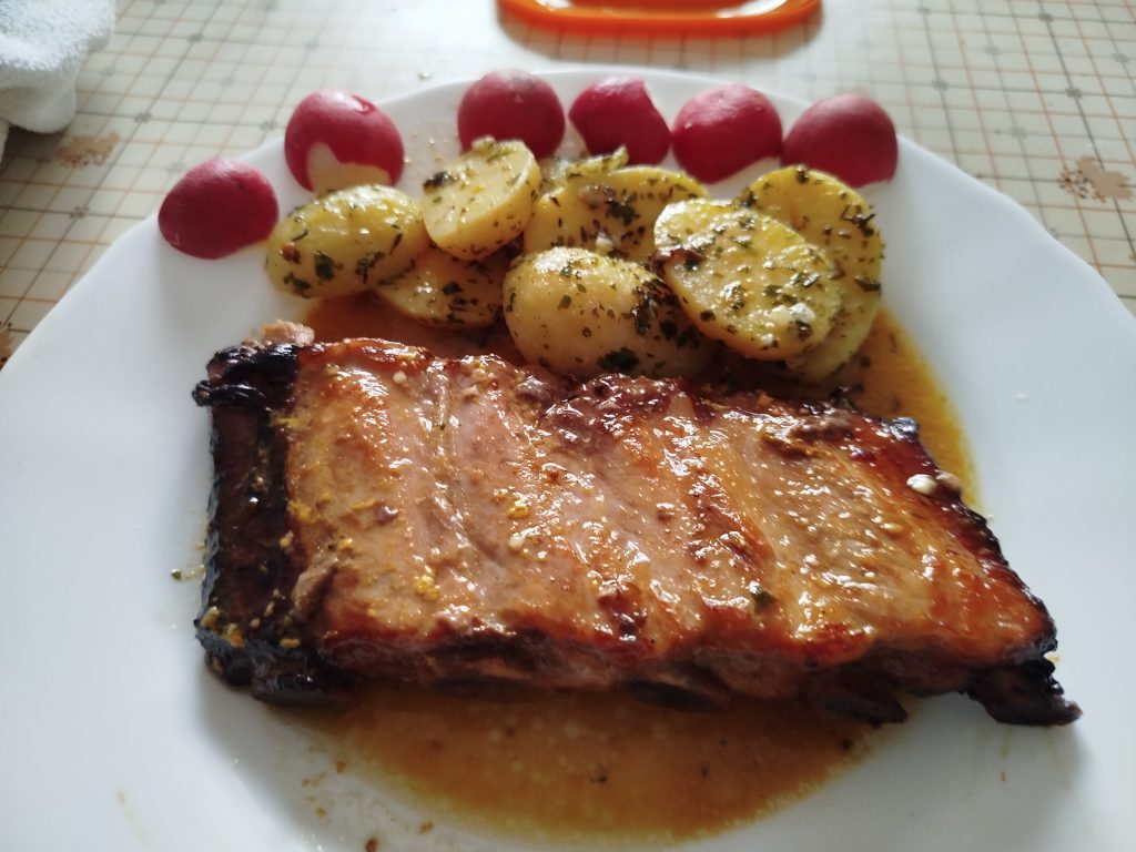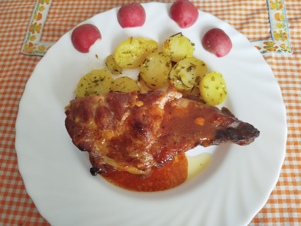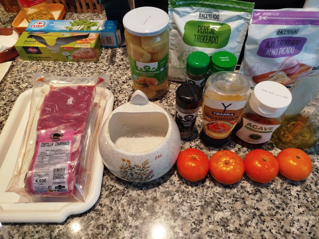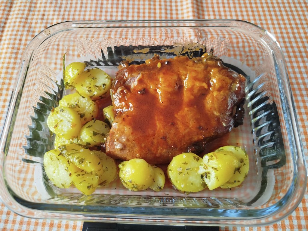 Churrasco o costillar de cerdo con patatas al ajo y orégano al horno o en Airfryer
