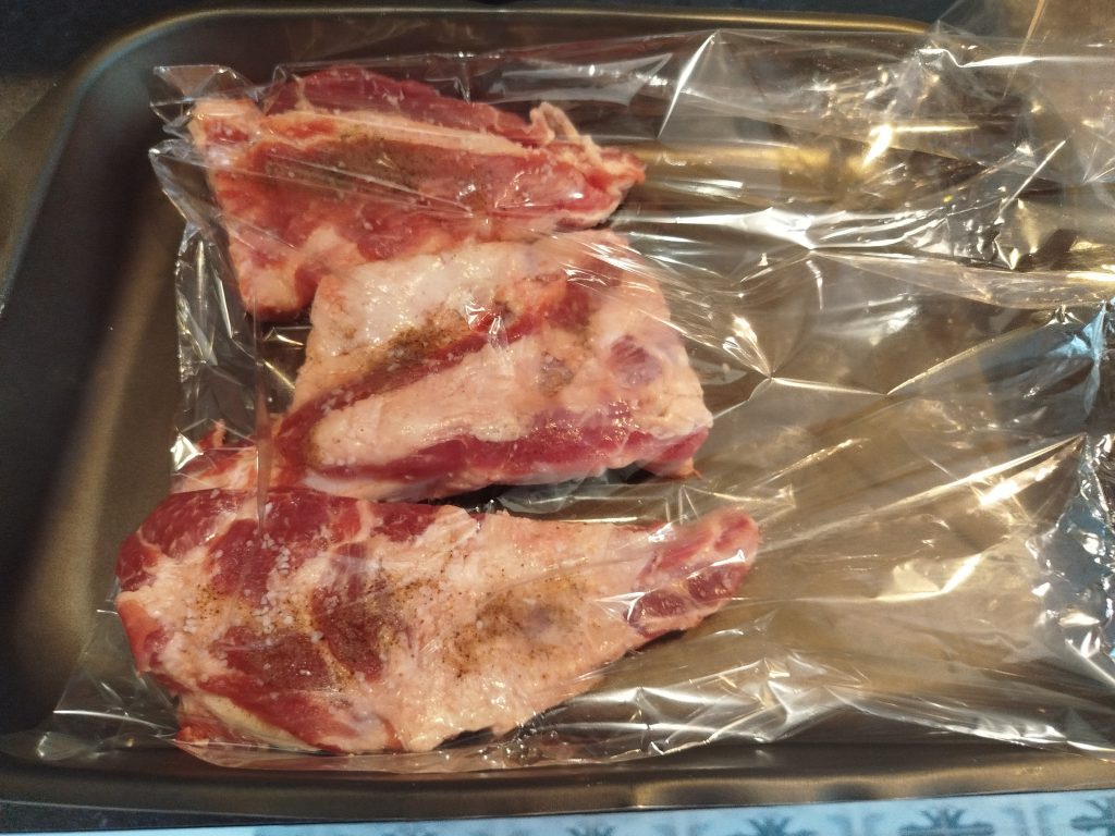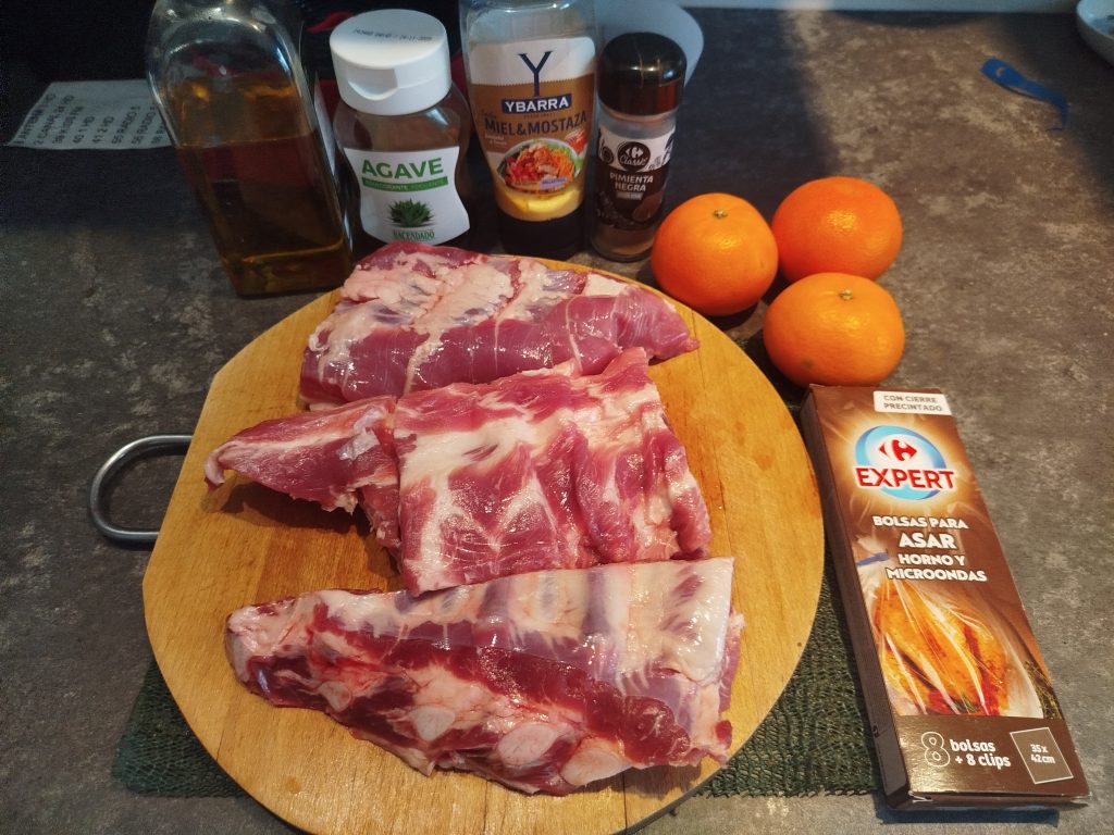 Si quieres hacerlo al horno, calentar el horno a 160ºC, y en una bandeja colocar el costillar, con el marinado, y tapar o envolver con papel de aluminio, y hacerlo a 160 o 170ºC durante una o dos horas, para que salga el hueso solo.