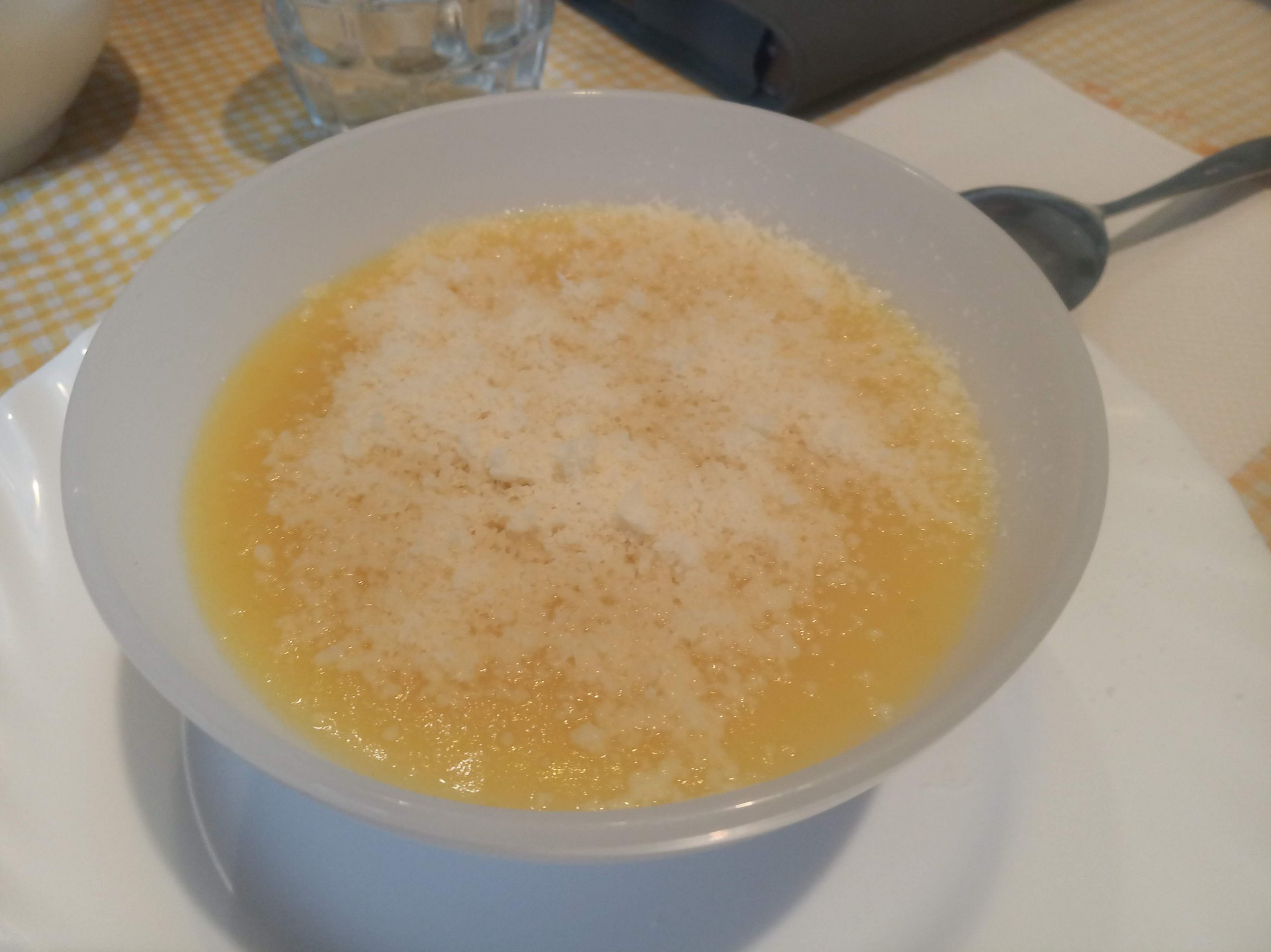 Repartir la crema en cuencos y agregar por encima las verduras refritas y el queso rallado.