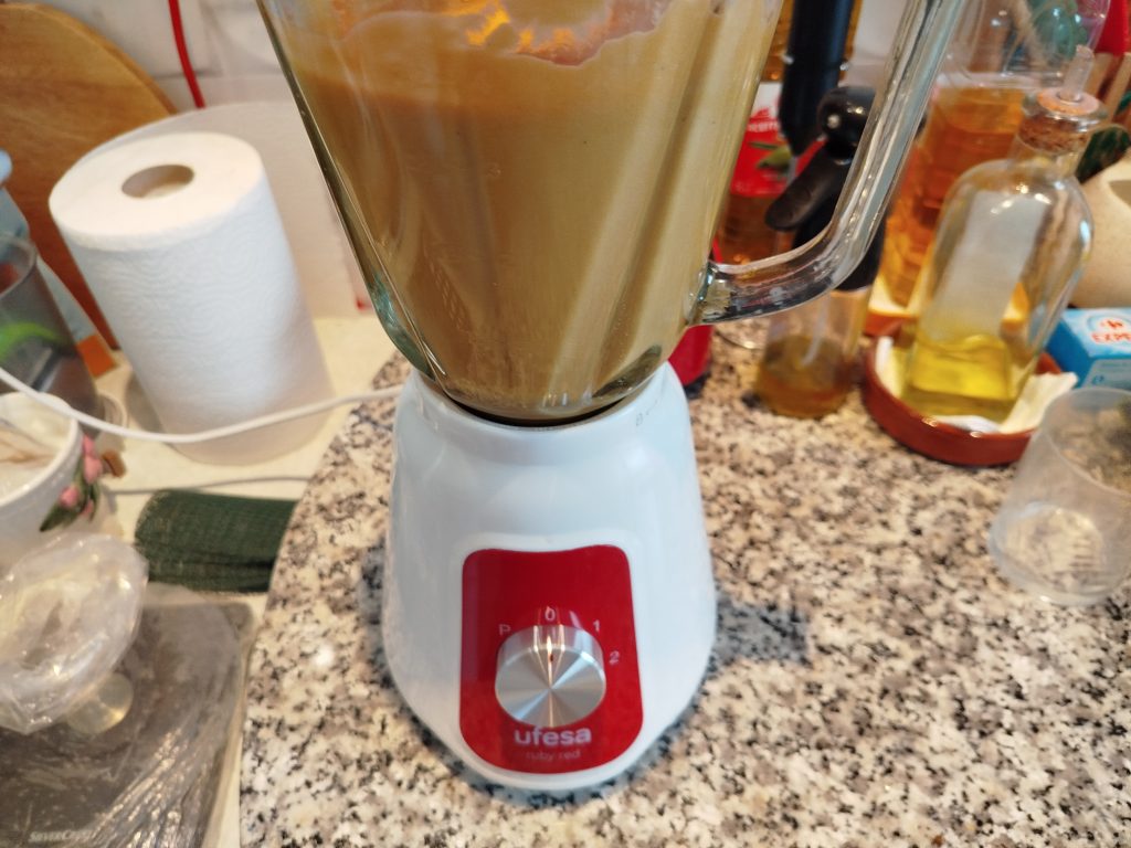 Puedes pasar en el cacerola, el brazo de la minipimer, o si la quieres más fina, en la jarra, probar la textura y el sabor, por si hace falta añadir algo, para dejarla a tu gusto.