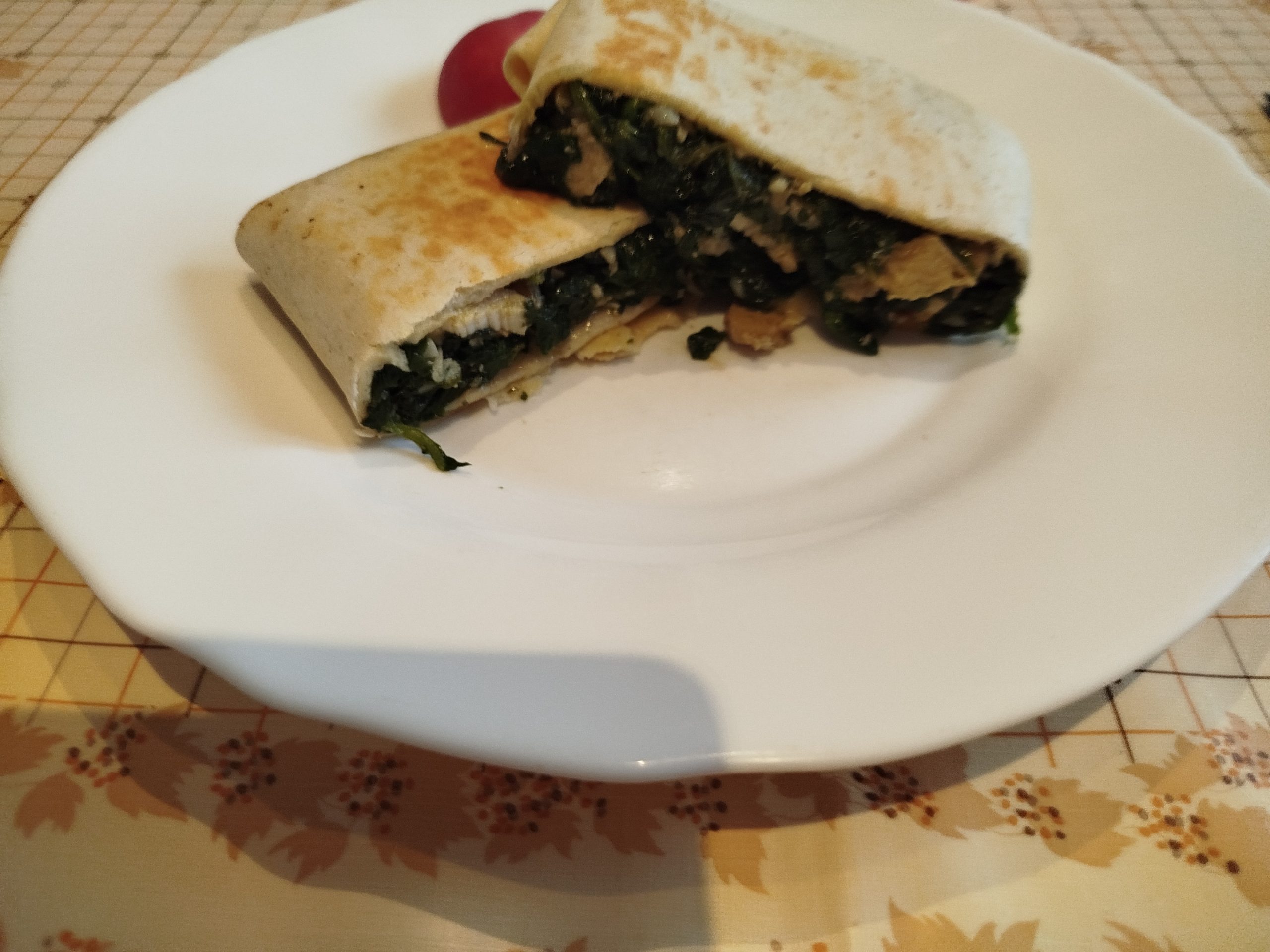 Puedes acompañarla, con unos Burrito de pollo y espinacas con especias en base de Piadina o tortillas de trigo.