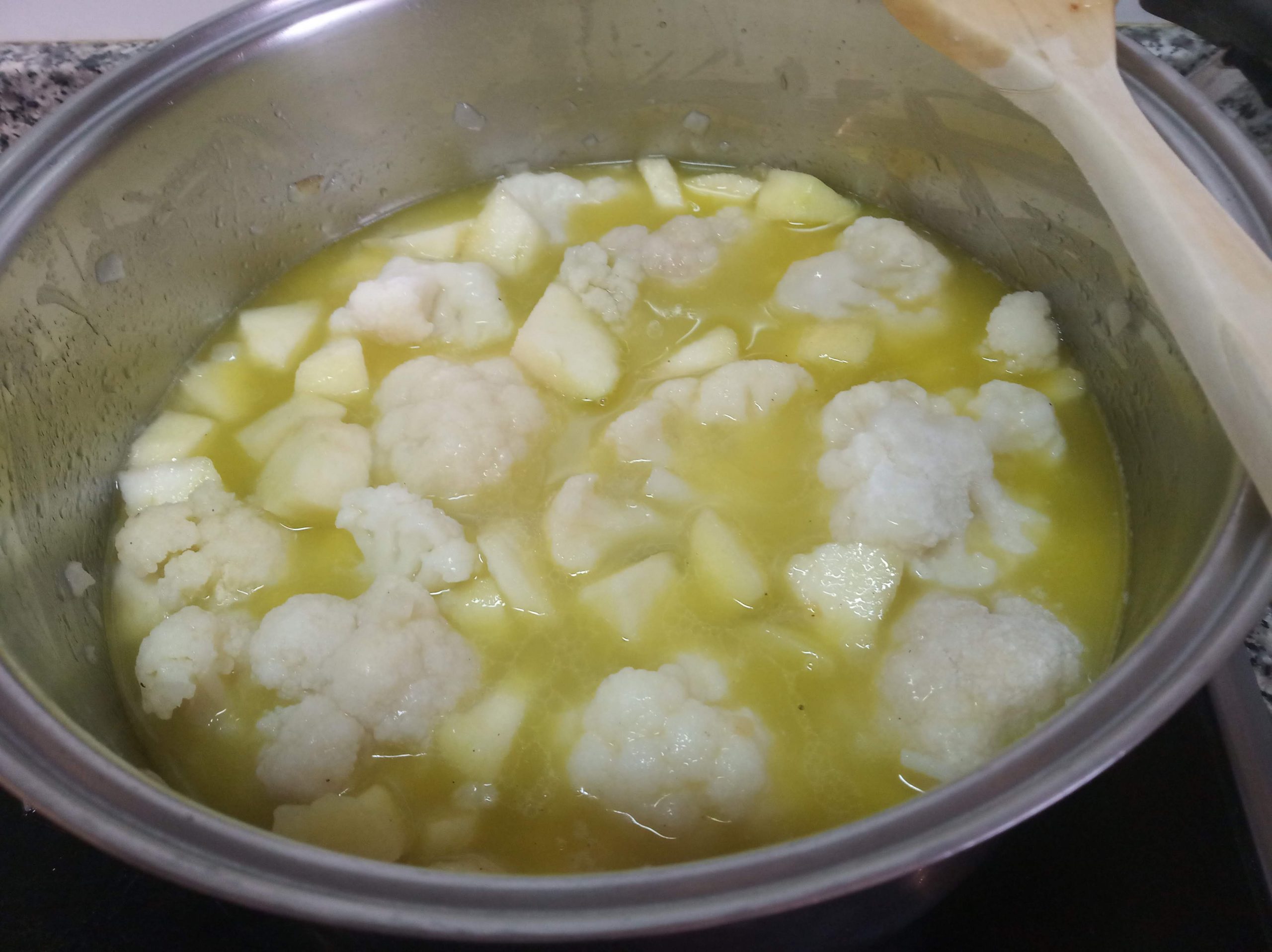 Dejamos cocer a juego lento y tapado unos 30 minutos, verificar que las patatas y coliflor esta tierna.
