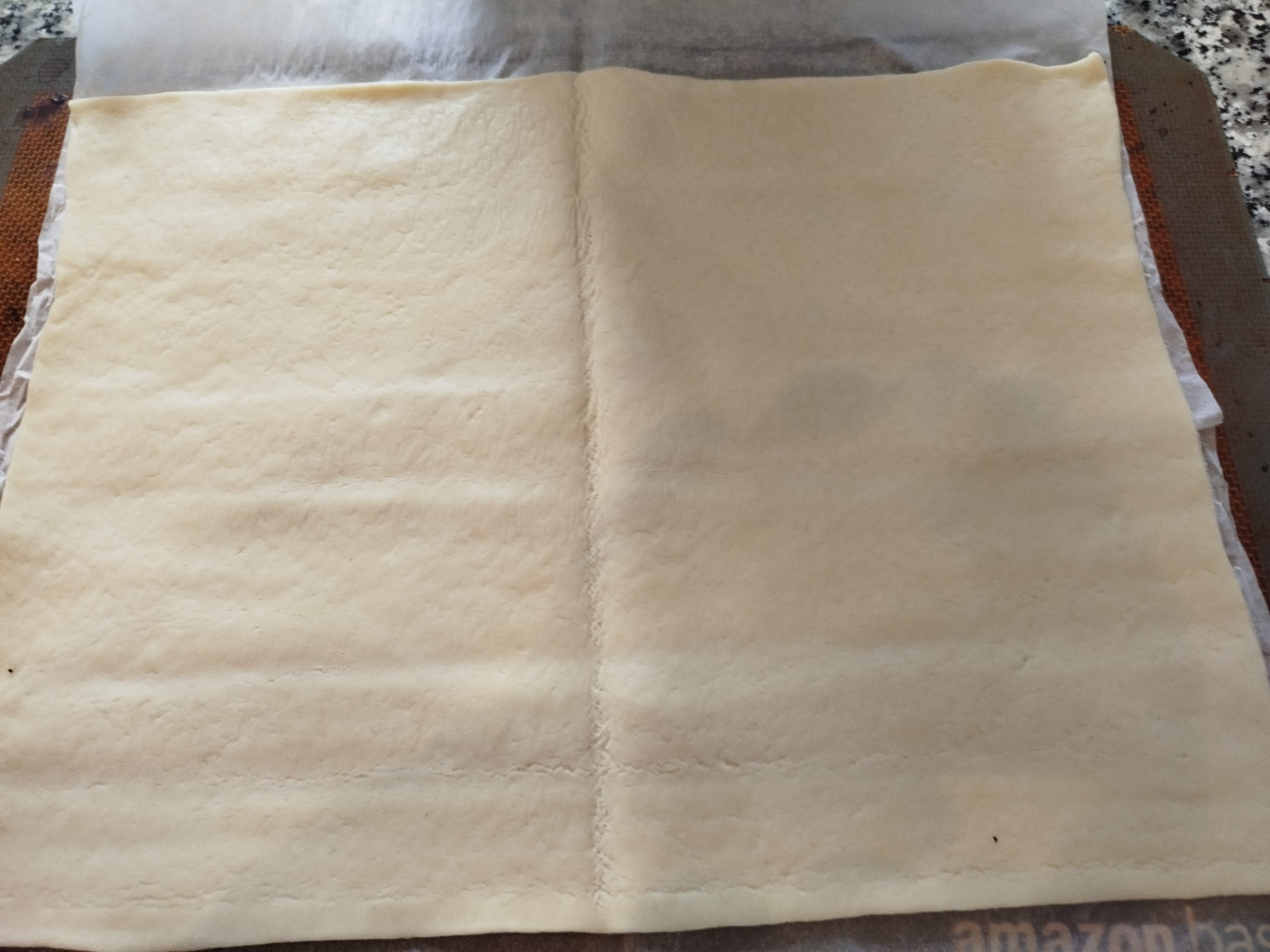 Extender la masa de empanada en su mismo papel, doblar por la mitad, para señalar en centro.