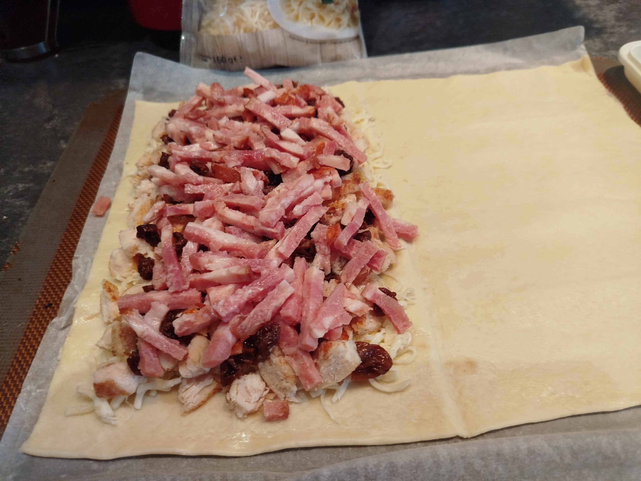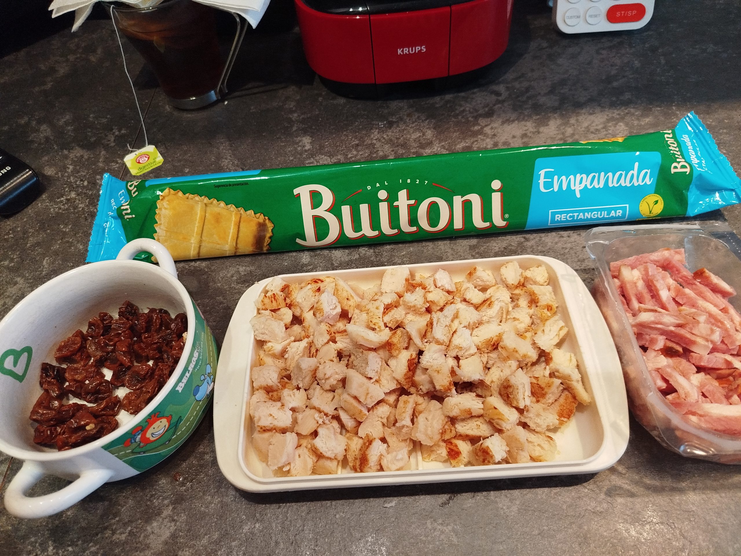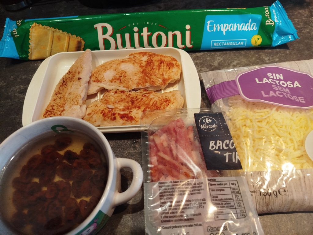 📜Receta tomada de otra mía Empanadas de Pechuga de pollo con bacón, dátiles y queso con masa Quebrada