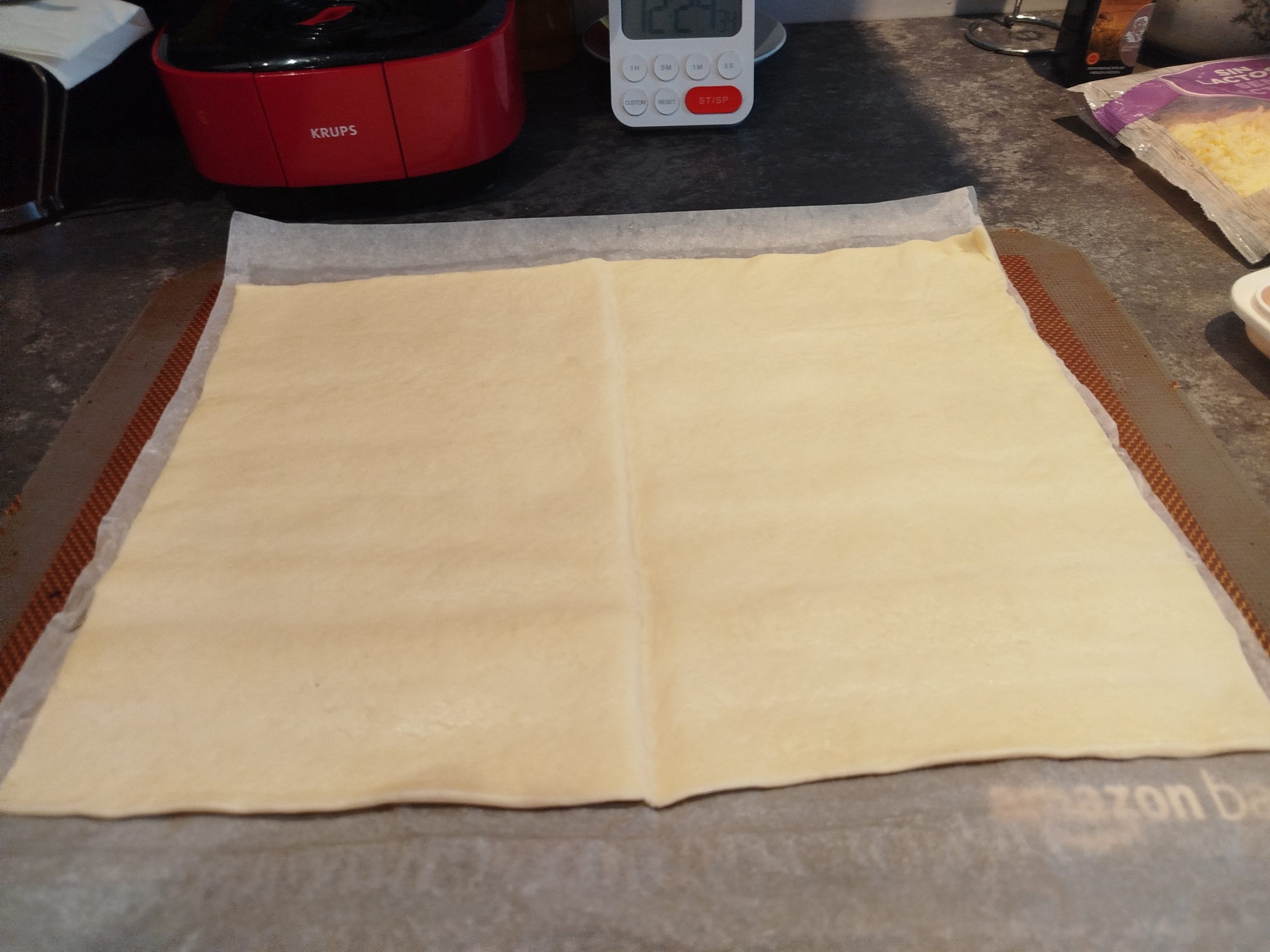 Extender la masa de empanada, en su mismo papel, y luego suelo colocar sobre un tapete de silicona, para poder manejar mejor.