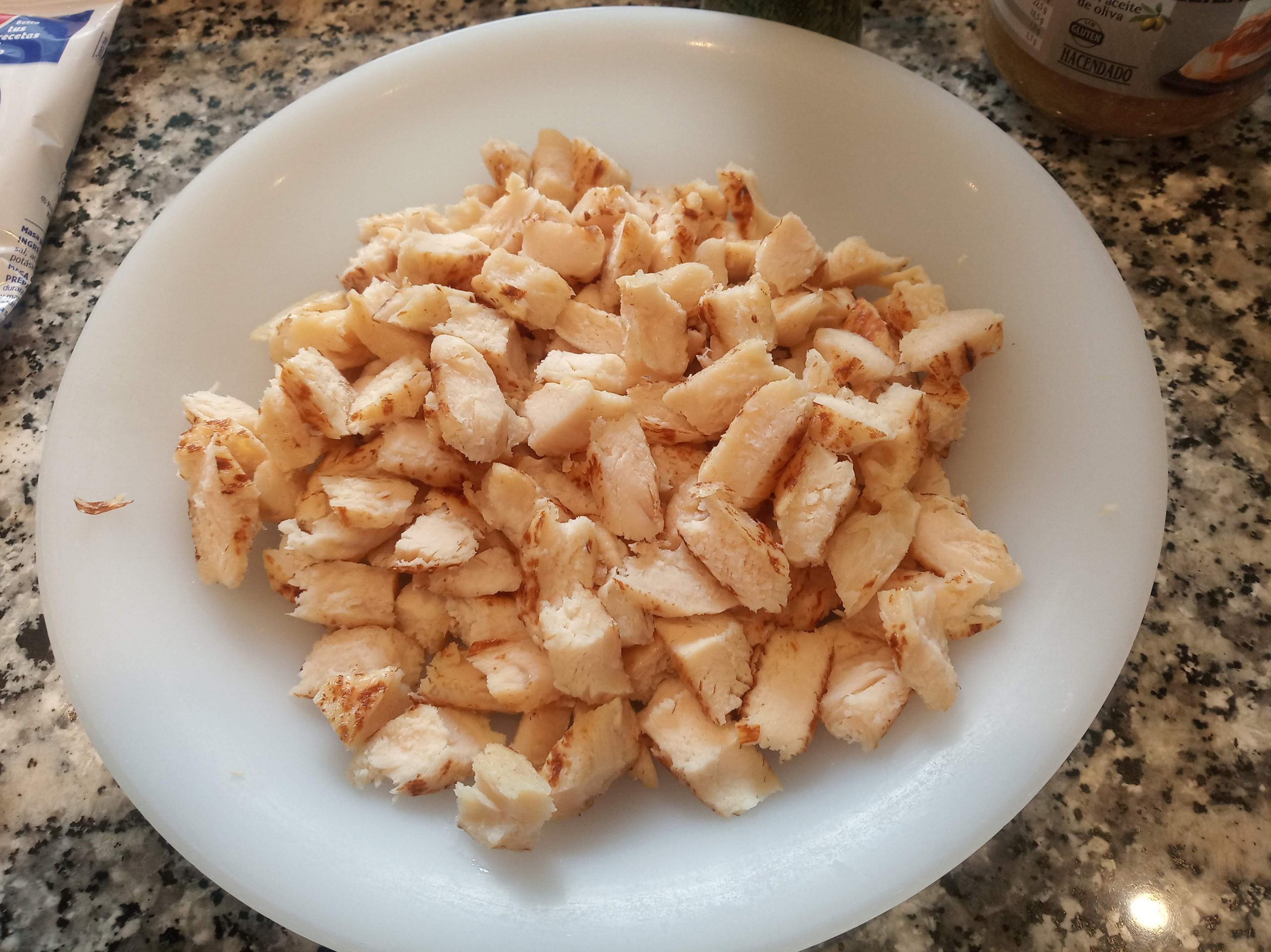 Si tienes resto de pollo asado o cocido, lo puedes utilizar, yo suelo tener los de Bofrost, que son muy socorrido, para tomar con alguna salsa en caliente, en ensaladas, pizzas, etc.