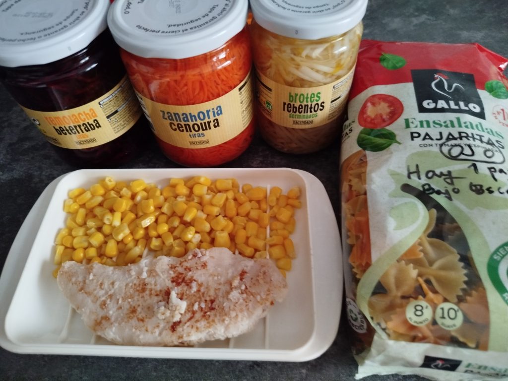 Descongelar el día anterior, la pechuga de pollo y el maíz dulce.