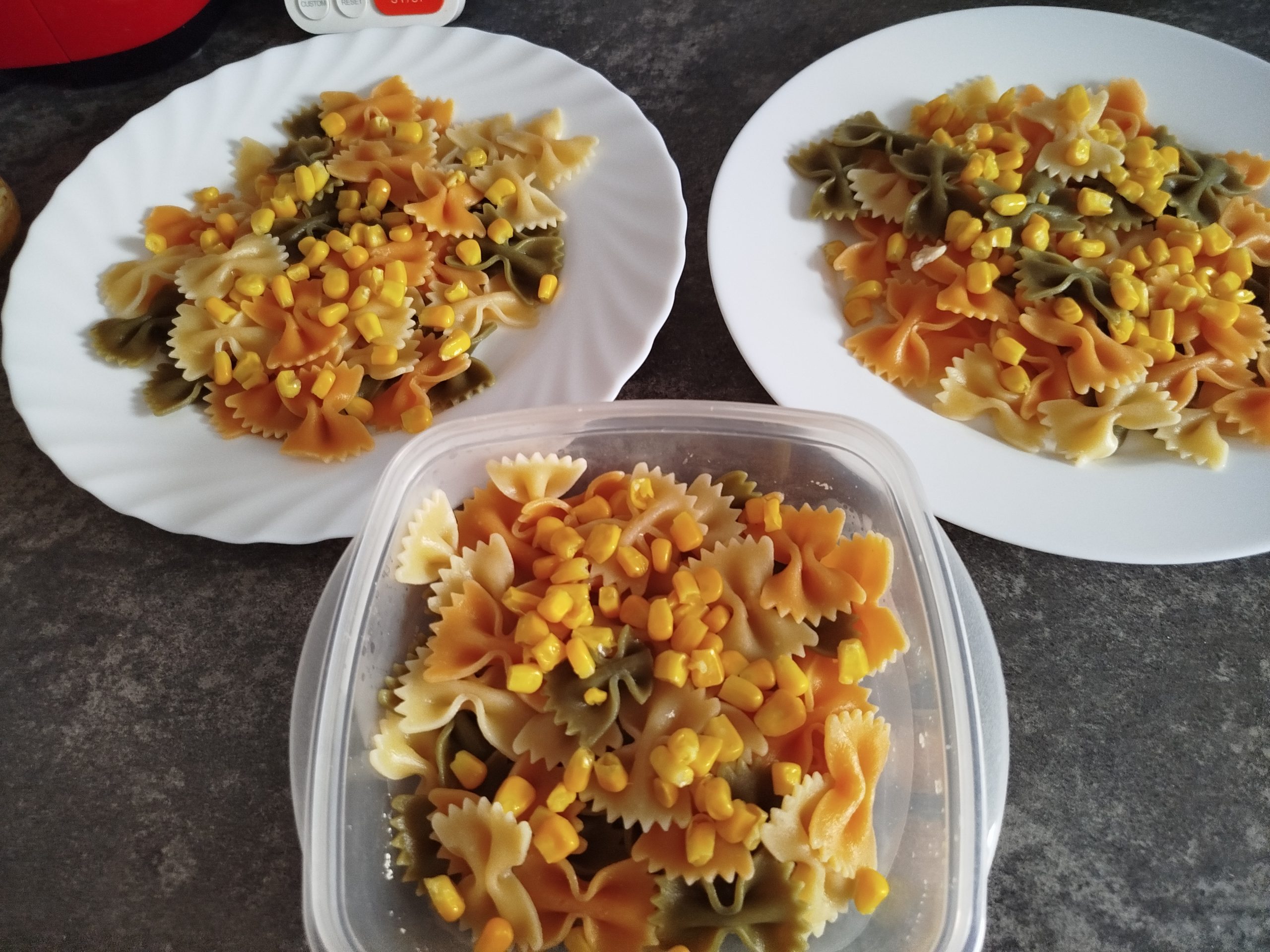 Repartir la pasta en tres platos llanos, o dos platos y un táper en mi caso.