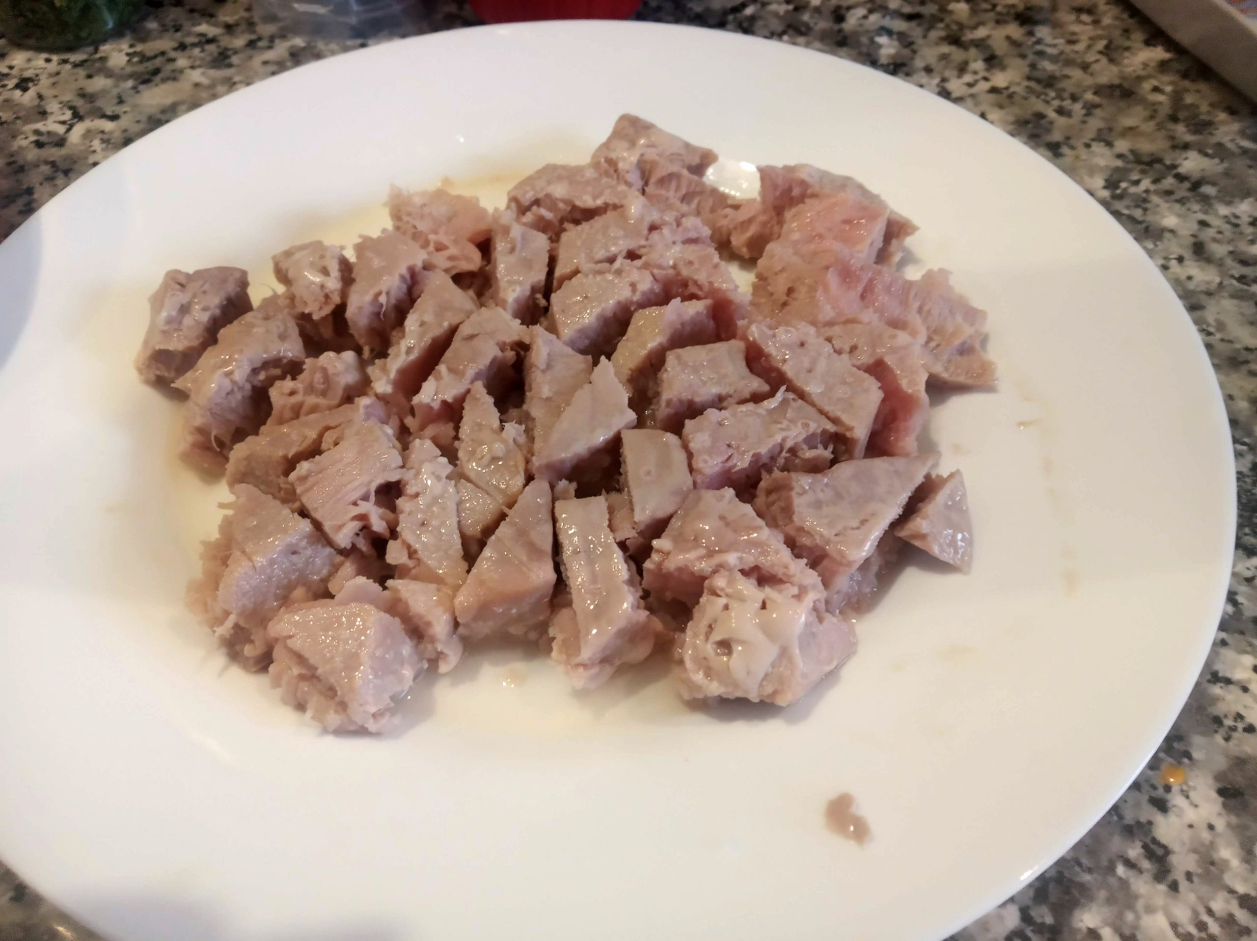 Cocemos también en el microondas los filetes de atún durante 1 minuto. Verificar que esta echo por dentro.