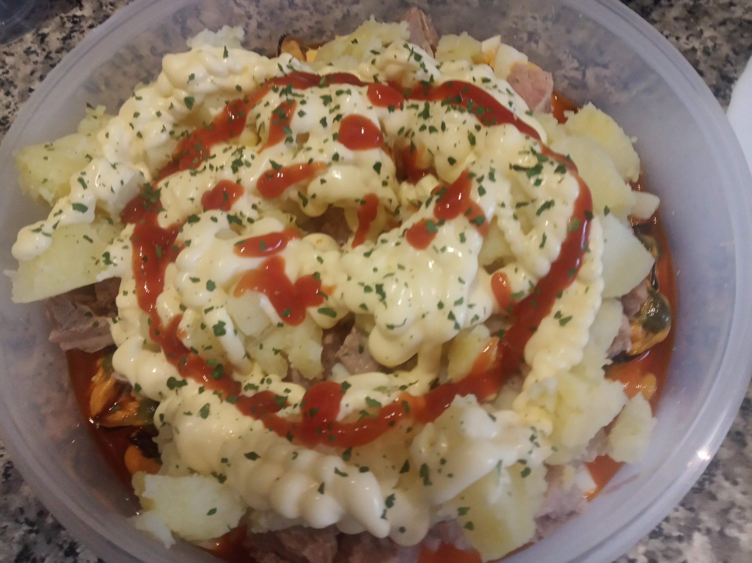 Echamos bastante mayonesa, y un poco de kétchup.