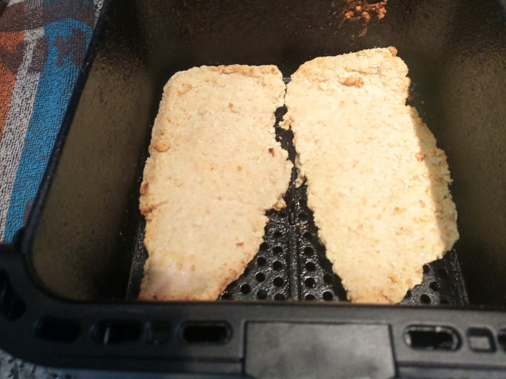 Colocar los Escalopes de pollo, según quepan, no montar entre ellos, en la mía solo caben 2, si quieres hacer más cantidad utilizar el horno o hacer en dos tandas en la Airfryer.