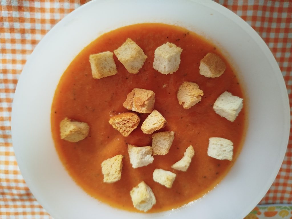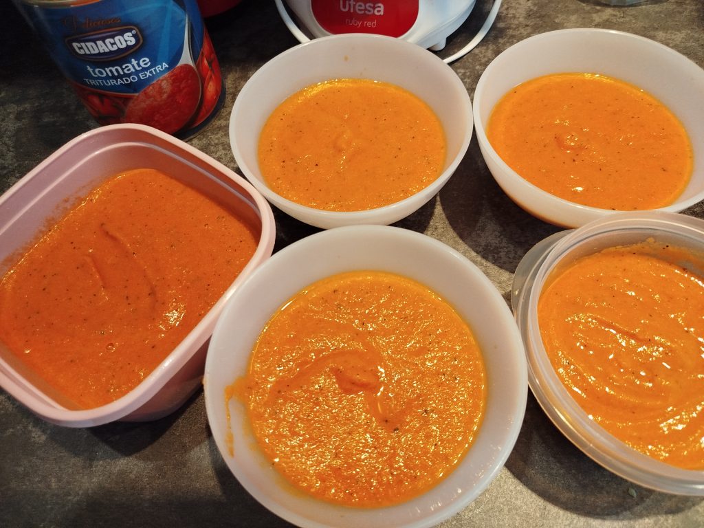 😊Esta vez lo acompañe con Salmorejo de calabacín y tomate