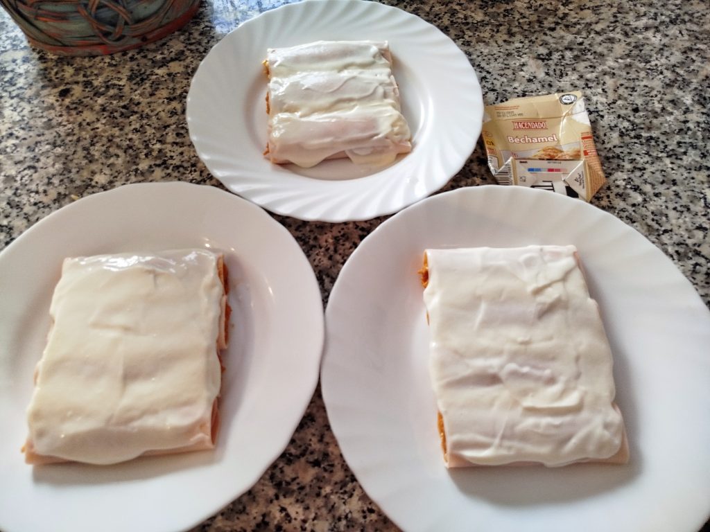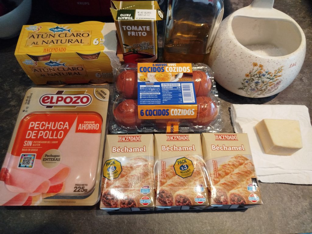 📜Receta tomada de otra mía Canelones de atún con salsa bechamel